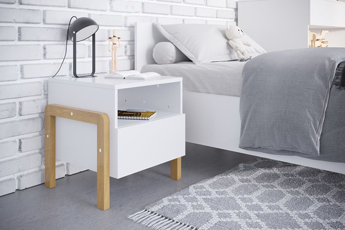 The Viktor Scandinavian-style bedside table adds a touch to any room.