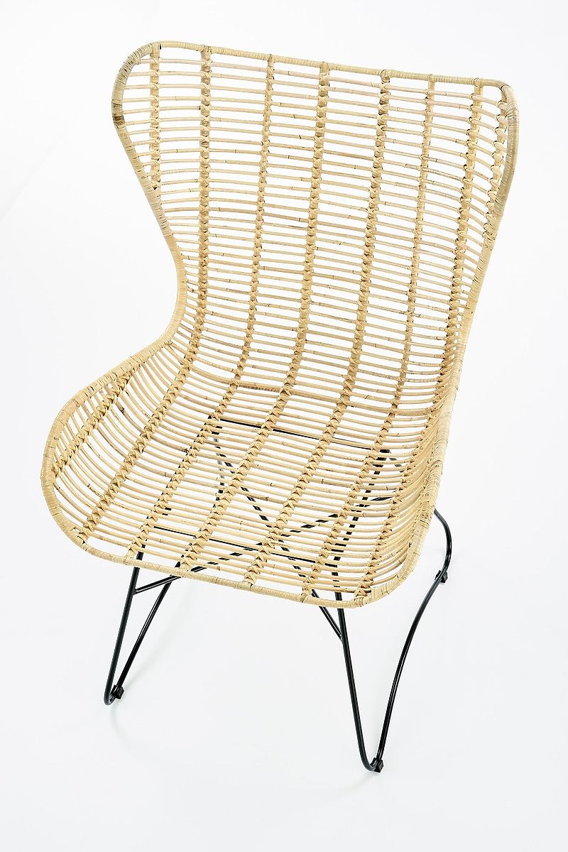 Stylish garden chair with natural rattan and black steel frame. .. more