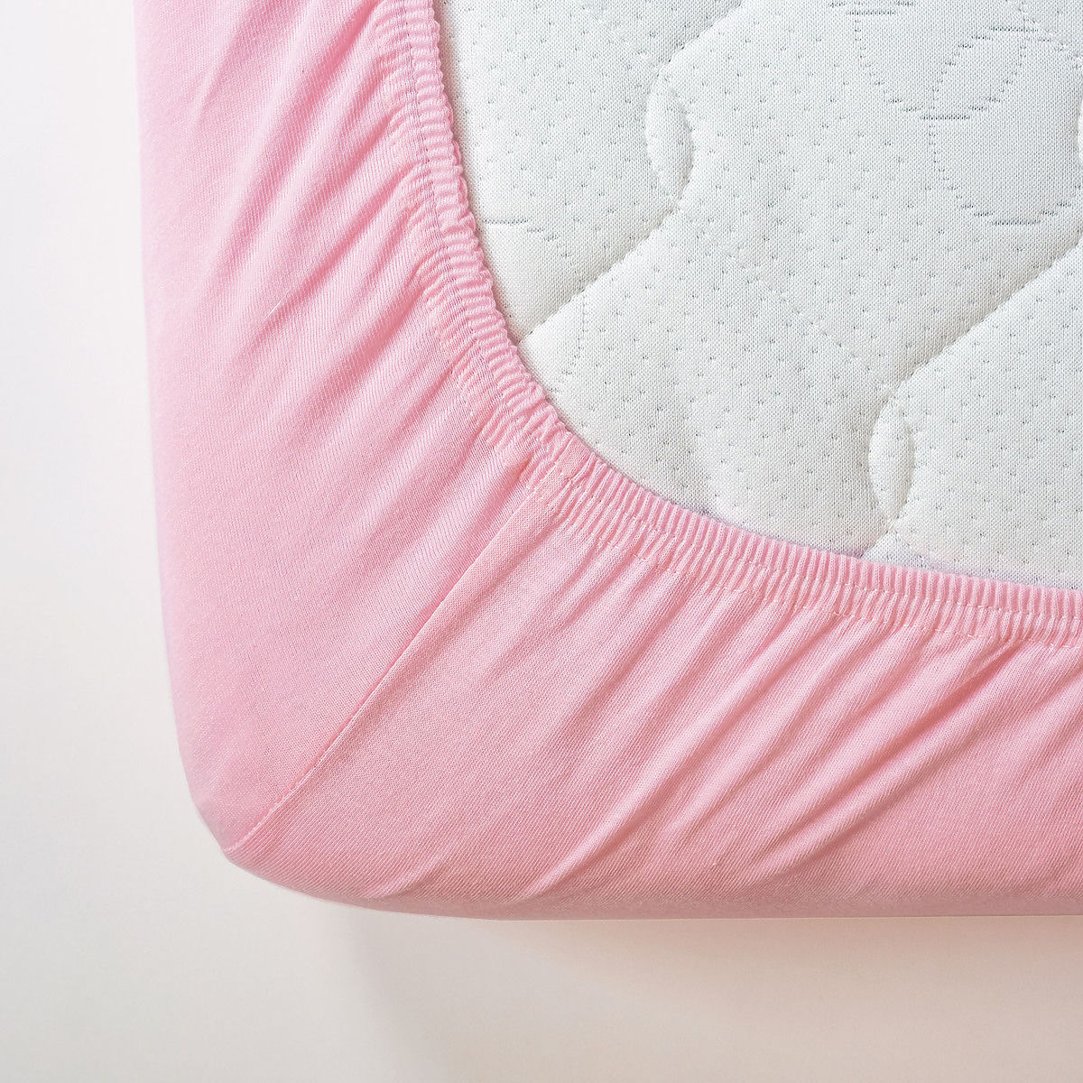 Cotton bed sheet in pink color . The sheet is woven from high-quality cotton yarns , which is why it retains its properties even after repeated washing. .. more