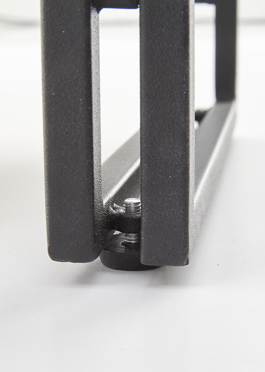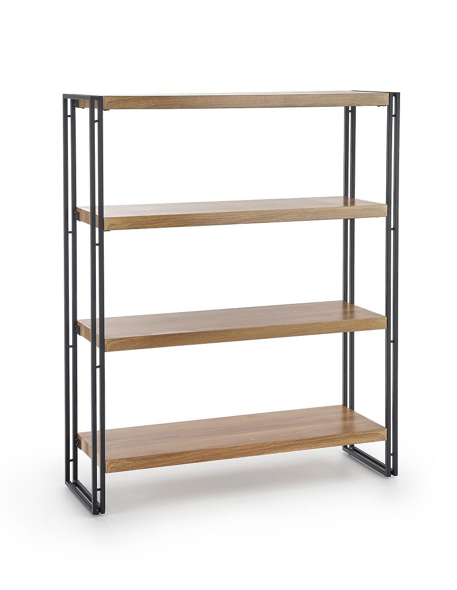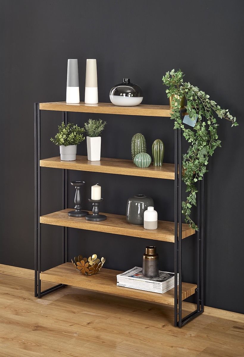 The shelf is made of laminated MDF board in golden oak decor, which ensures an elegant appearance. Its black stable structure made of powder-coated steel gives the shelf a modern and stylish design.