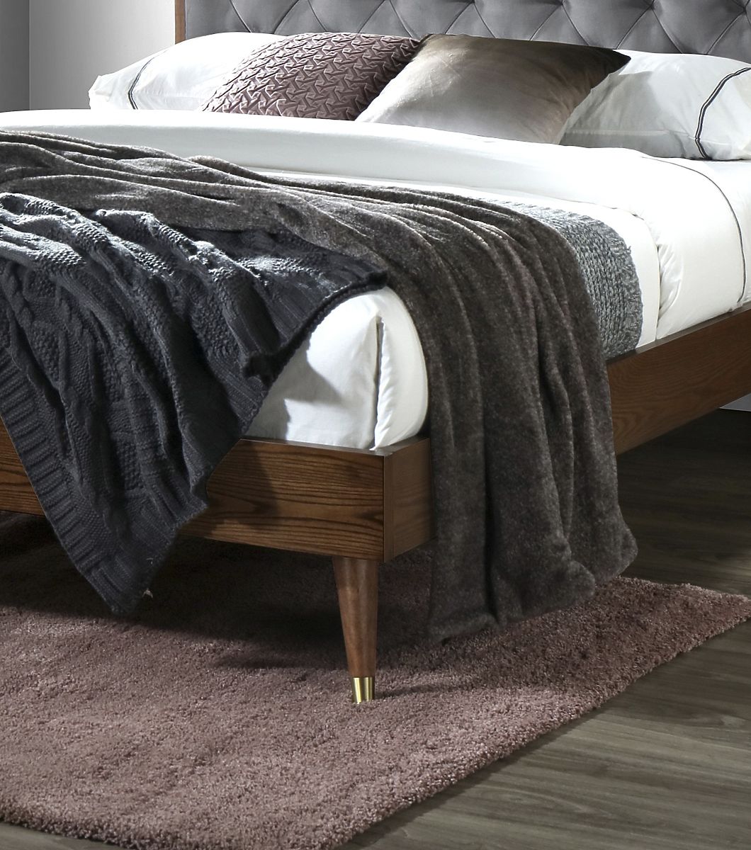 The CASSIDY bed, made of first-class materials , such as velvet fabric for upholstery and solid rubber wood construction, will offer not only a beautiful design, but also high quality and long life. The velvet fabric for the upholstery is elegant and soft to the touch, thus increasing the overall comfort of the bed.