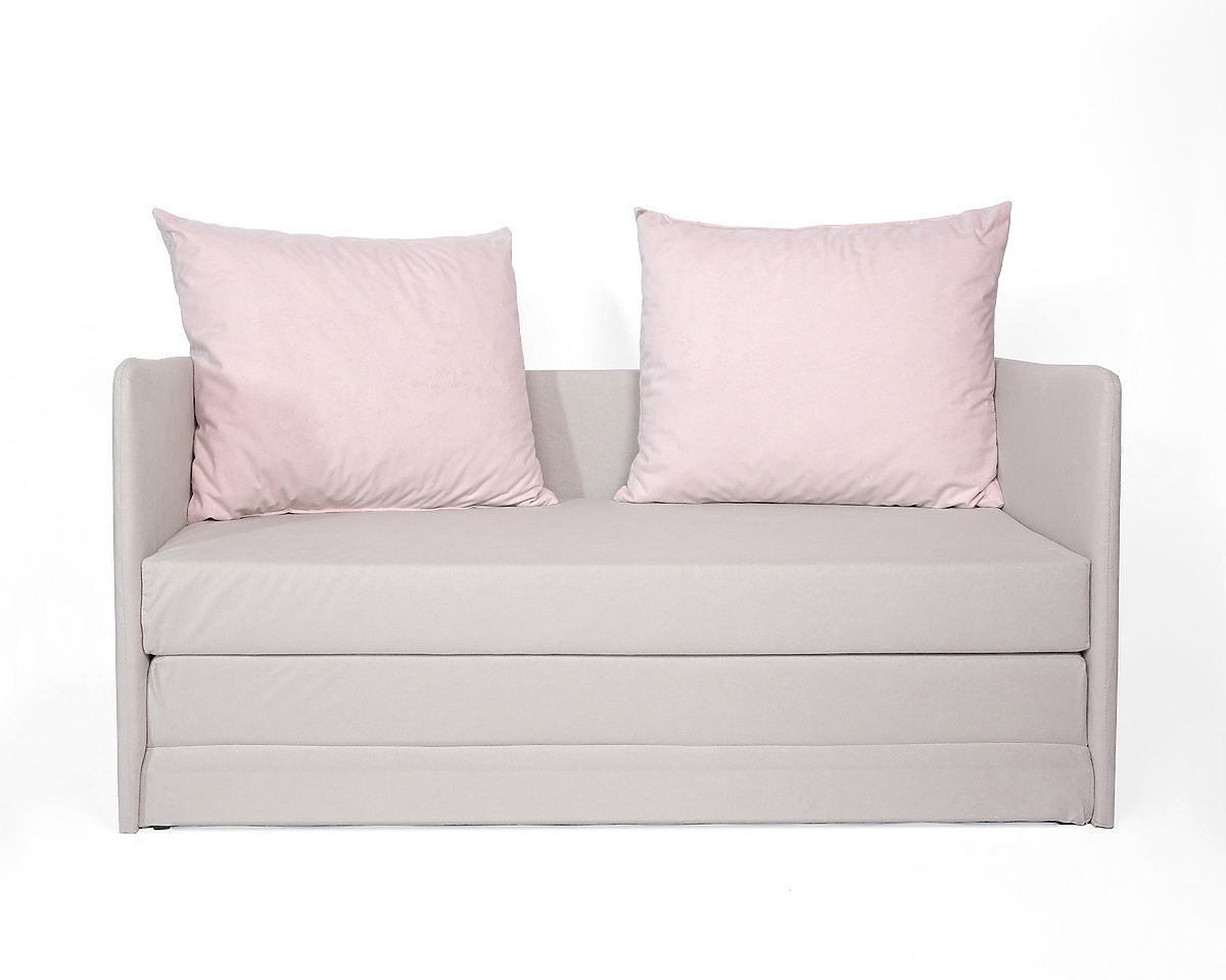 The beautiful and very practical light grey Jack sofa with powder pink cushions will fit perfectly into any girl's room.