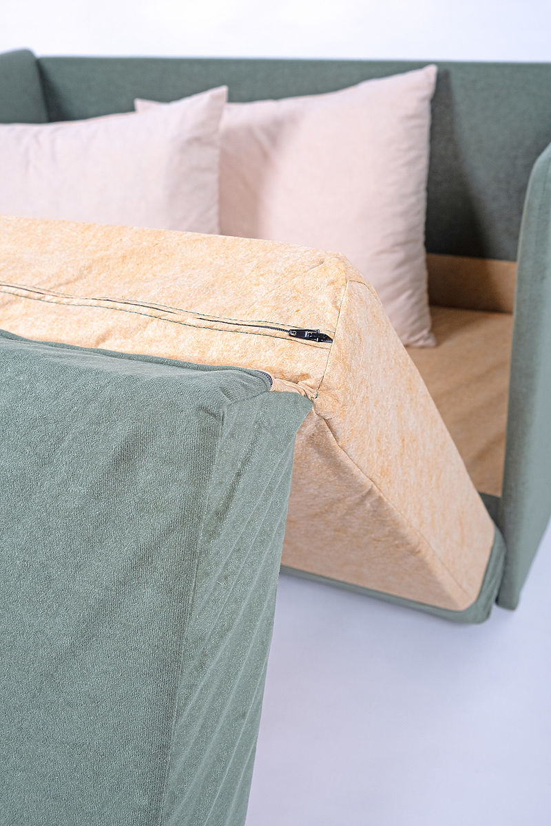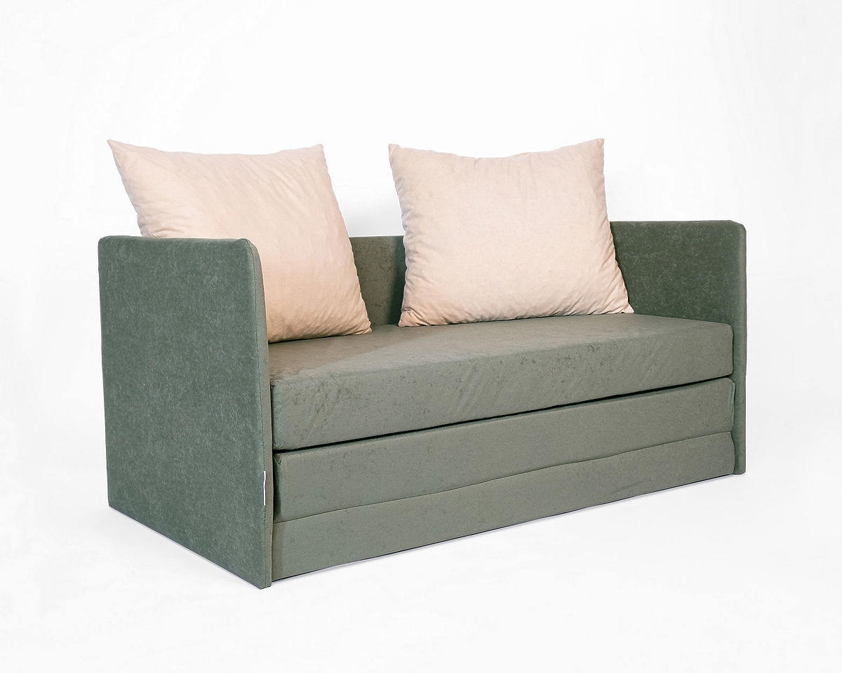 Convertible sofa Jack in dark green with beige cushions for kids' rooms. .. more
