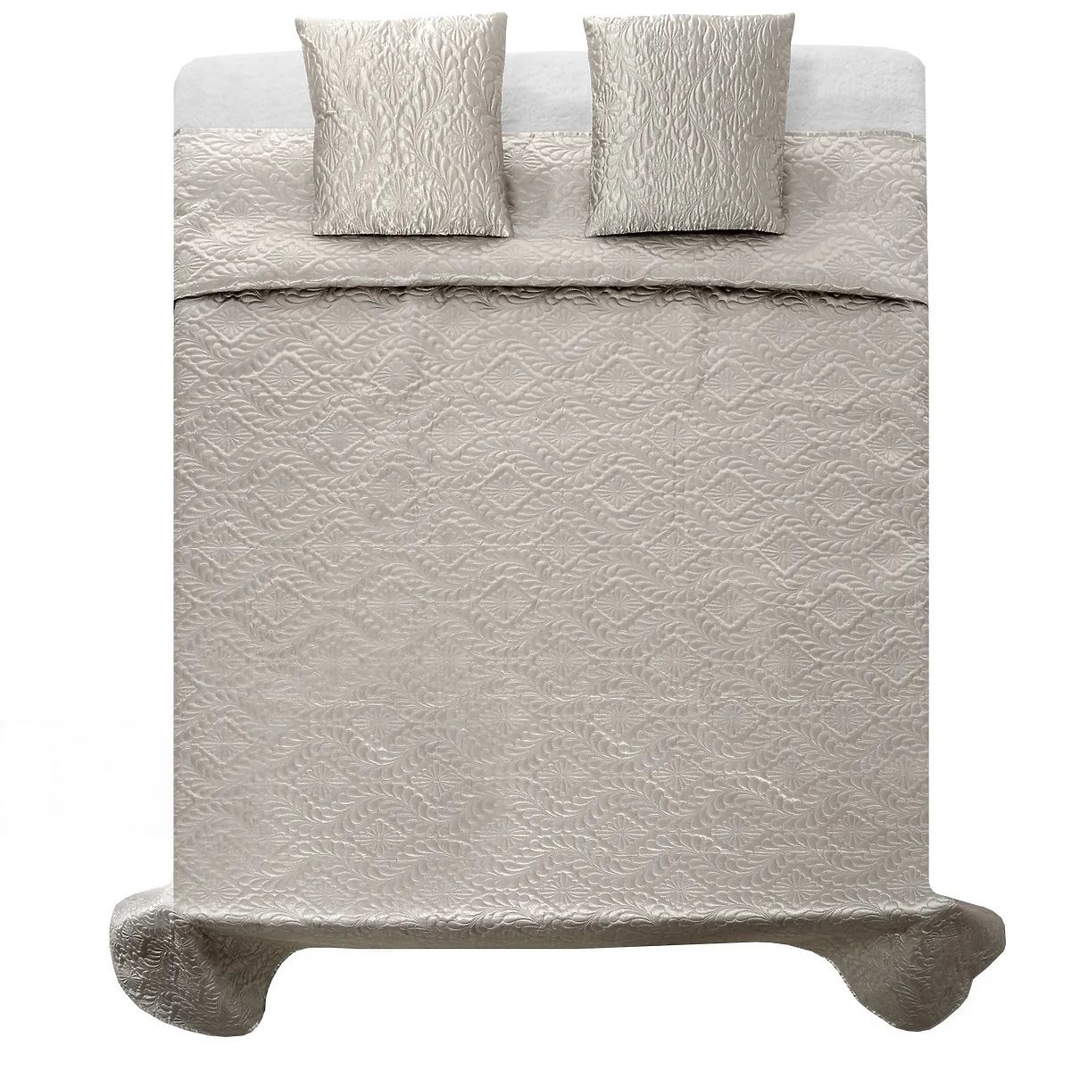 Satin bedspread with a unique embossed pattern in silver gray. .. more