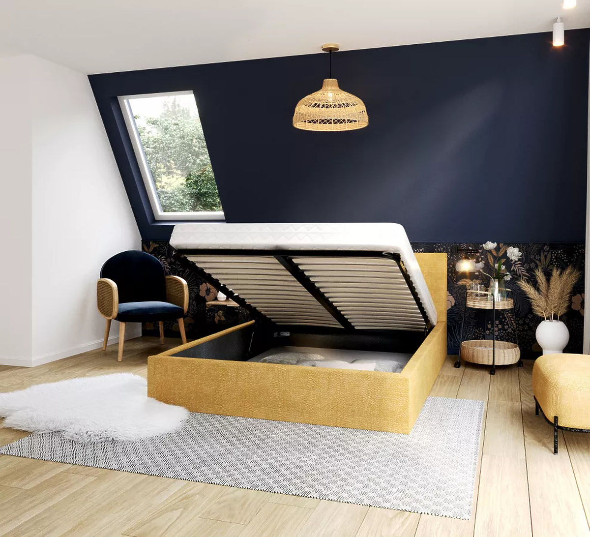 The TULSA upholstered bed in yellow color and with dimensions of 120 x 200 cm will become a distinctive element that attracts attention and at the same time creates a cozy and pleasant space for relaxation. The color yellow is associated with joy, optimism and happiness. It is fresh and expressive, which can add energy and positive mood to your bedroom. This color is a great choice for those who want to bring a sunny and warm feel to their space.