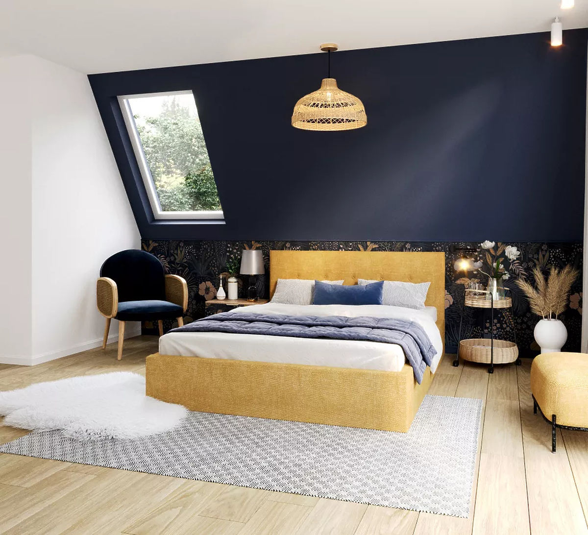 Choosing the TULSA upholstered bed in yellow with dimensions of 180 x 200 cm is a great decision for your room. The color yellow is associated with joy, happiness and optimism. It brings solar and positive energy into the room. Yellow can also add a warm and welcoming feel to a space. This bed size provides enough space to move freely during the night. Sufficient space allows partners to sleep comfortably and without any restrictions, which contributes to overall rest.
