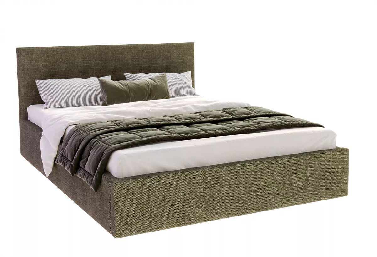 Upholstered bed TULSA in size 140 x 200 cm and olive green color. This bed combines beautiful design with comfort and practicality. Upholstered headboard adds .. more