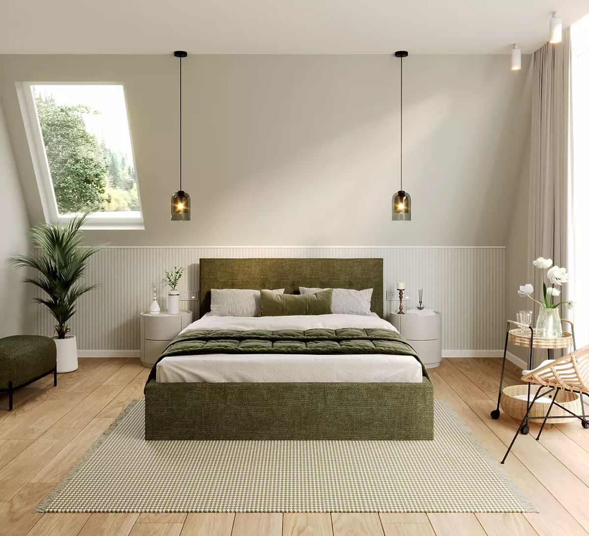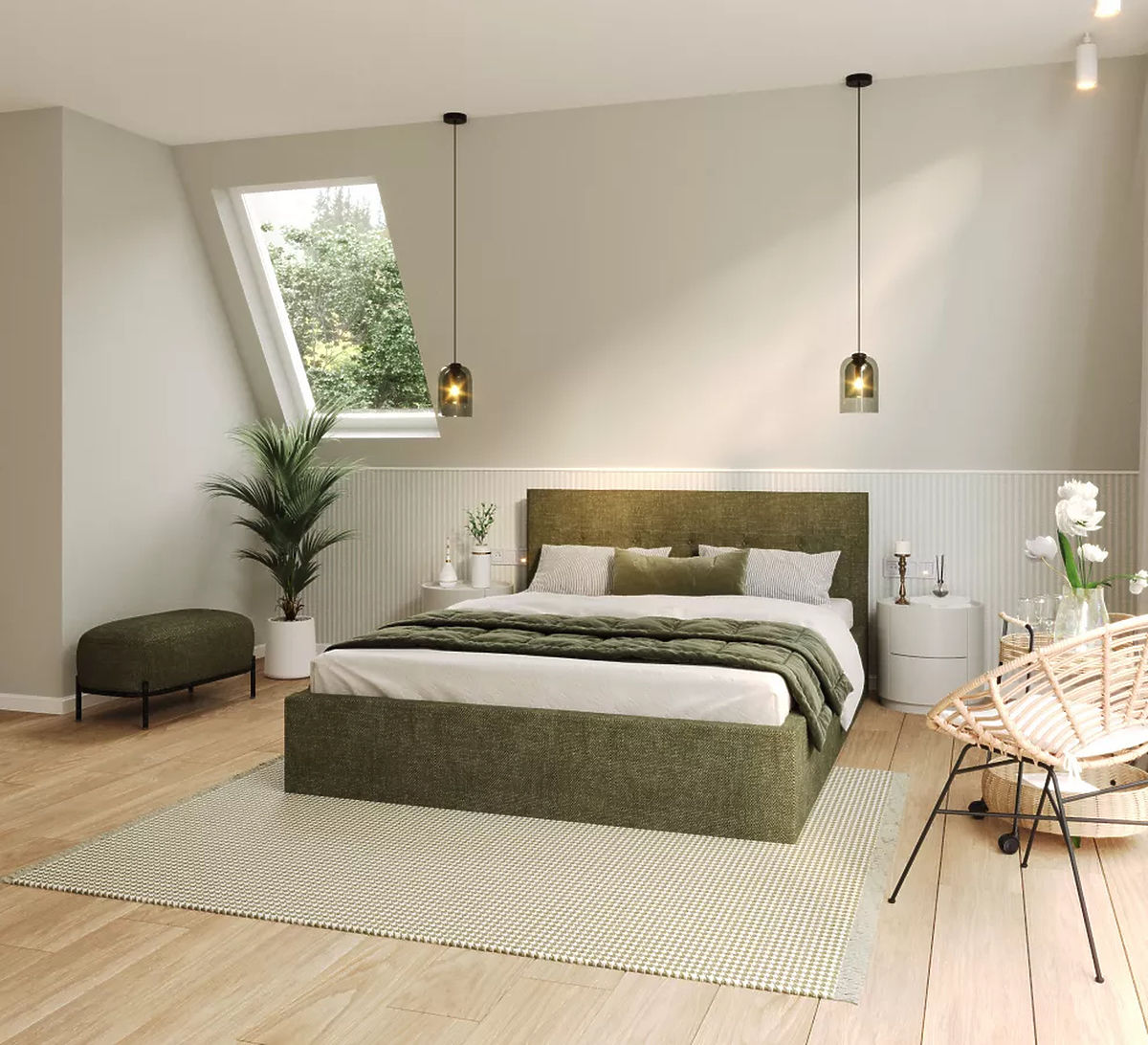 The TULSA bed in olive green color and dimensions 180 x 200 cm certainly offers a great combination of elegance and comfort for your bedroom. The size of the bed provides enough space to move freely during the night, which is key for quality sleep, especially for couples. Sufficient space allows both partners to sleep comfortably and without any restrictions. The olive green color brings peace and harmony to the room, which is a great way to create a relaxing environment in your bedroom.