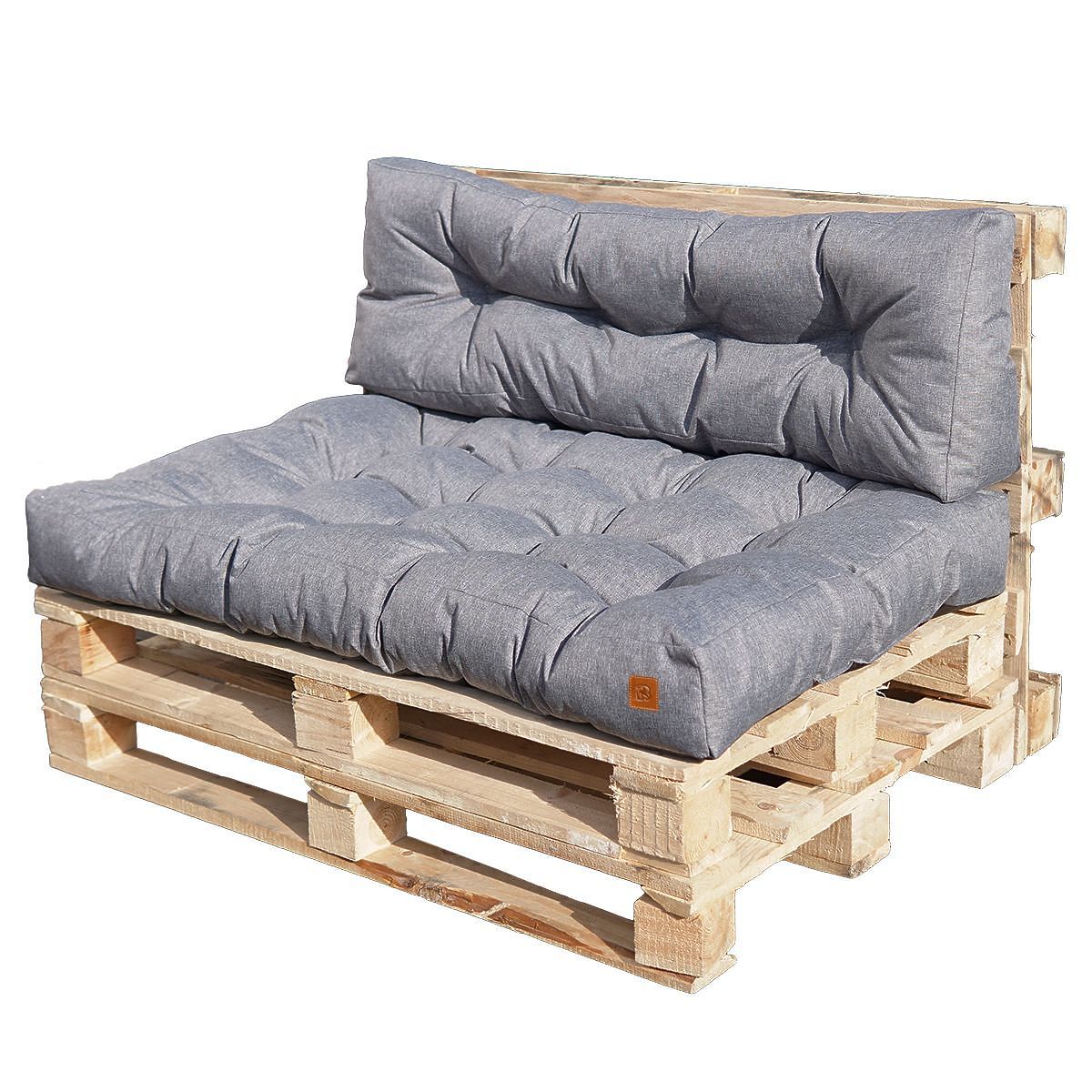 Treat yourself to unique relaxation in the garden, terrace or balcony with comfortable and stylish garden cushions suitable for pallet furniture. The set includes a light gray quilted seat and backrest .