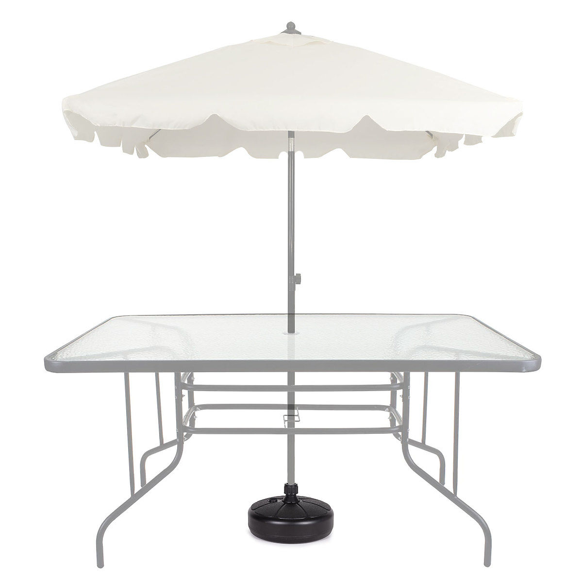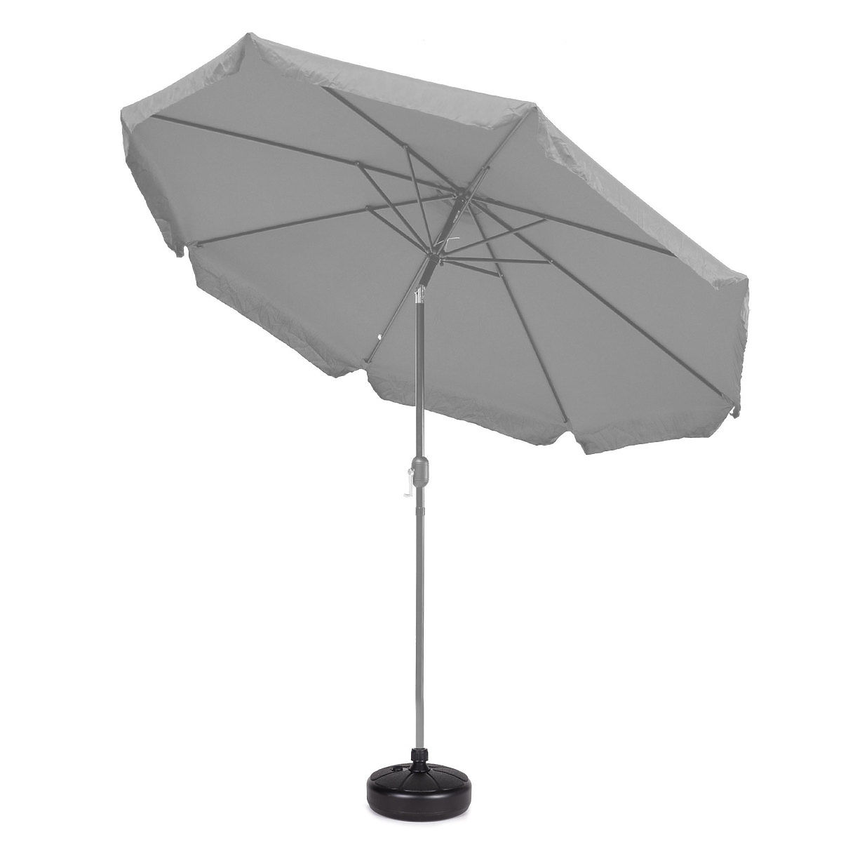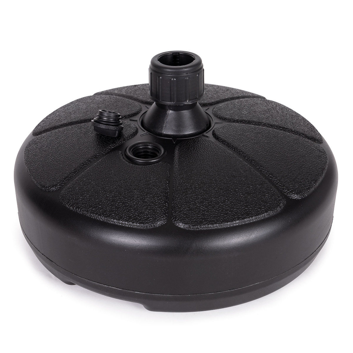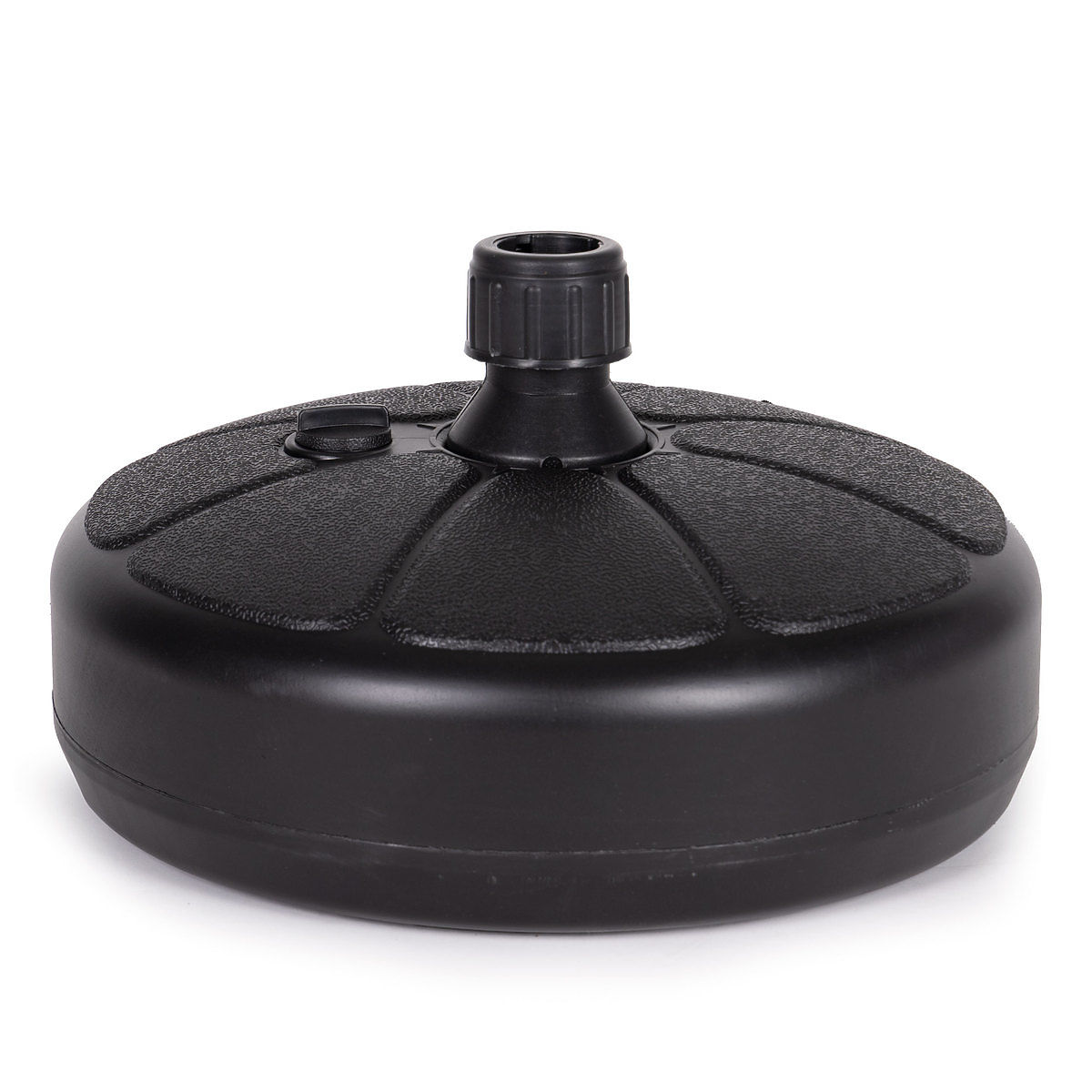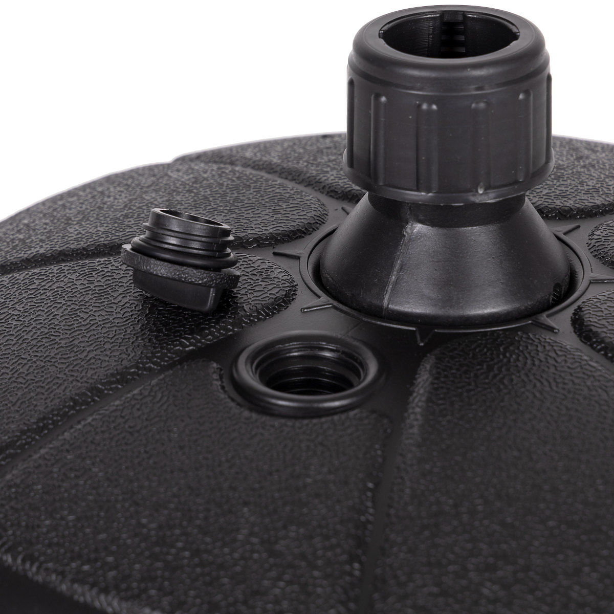 There is a removable plug in the upper part of the base, after unscrewing it, fill the base with water. A cartridge filled with water weighs approximately 13 kg, which provides an ideal stabilizing load for the umbrella.