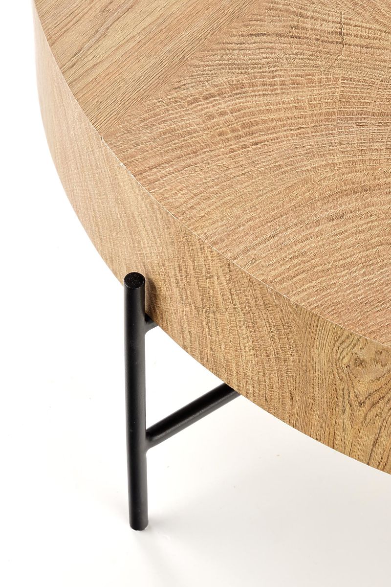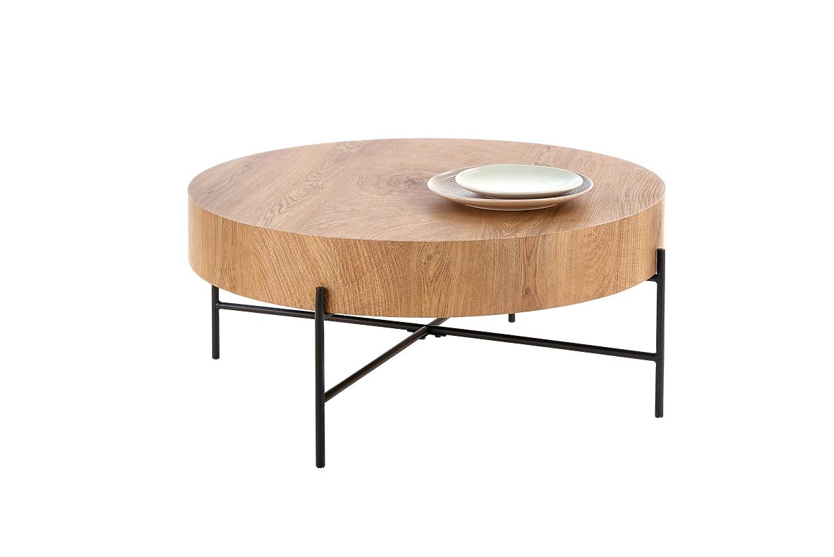 Are you looking for a unique and stylish coffee table for your living room? Then this Brooklyn table in wooden stump decor with black legs is the ideal choice for you. The wood-imitation top has a rustic look that will add a touch of warmth and coziness to your interior. Black metal legs ensure stability and a modern look.