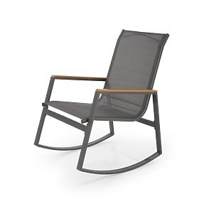 The rocking chair in a universal gray design fits perfectly into any garden, terrace or balcony.
