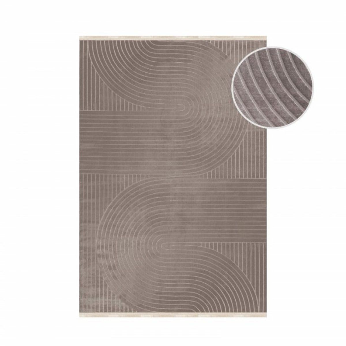 This one-piece carpet Style in brown design combines precise lines with elegant shapes . Each rug is the embodiment of a masterpiece, where plastically cut hair of one color creates the effect of depth and emphasizes dominant patterns and motifs. The paths across the carpet add dynamism and liveliness to the design , while their softness and comfort provide luxurious comfort. Light natural tones and the motif of arches make these rugs a perfect addition to living rooms , lovers of elegance and a fresh atmosphere will love them. And thanks to their practicality, they are also ideal for spaces with underfloor heating.