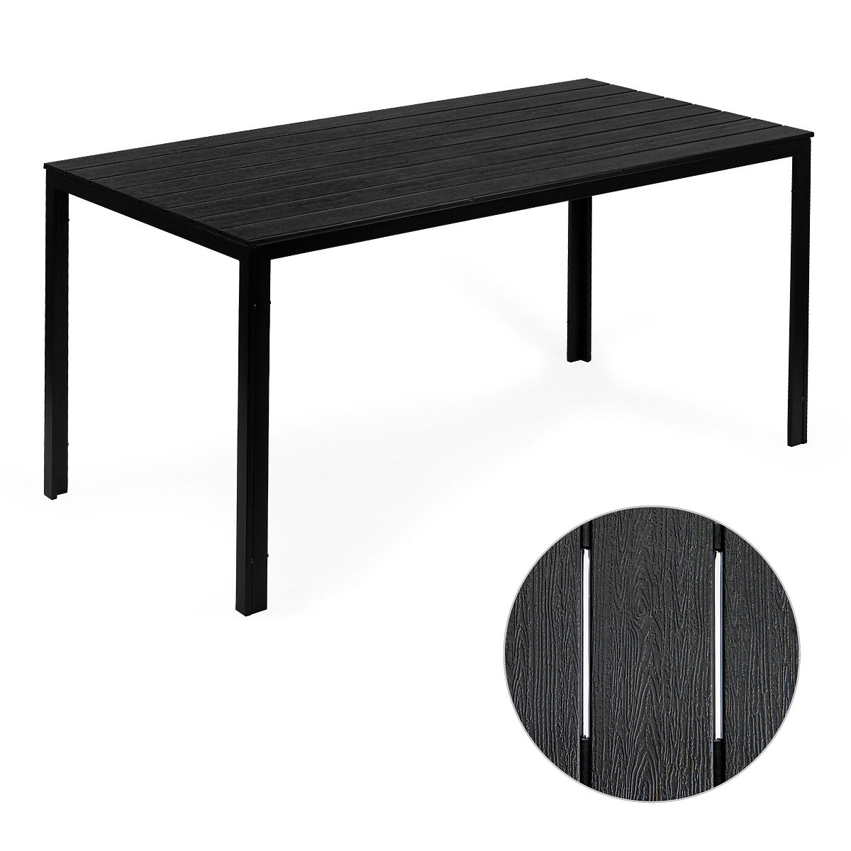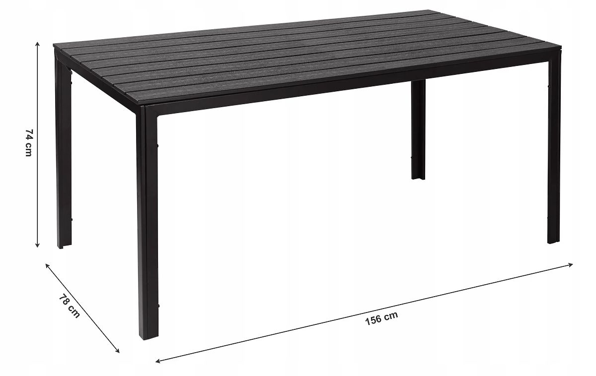 Large garden table for 6 people with a 156x78 cm black top. .. more