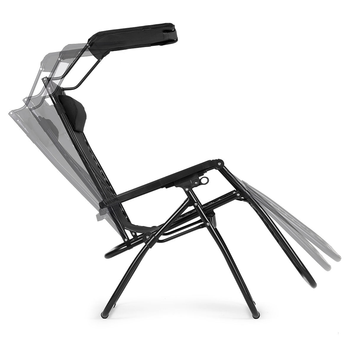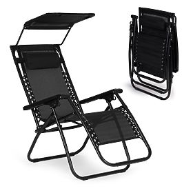 Adjustable garden lounger with canopy and zero gravity position. .. more