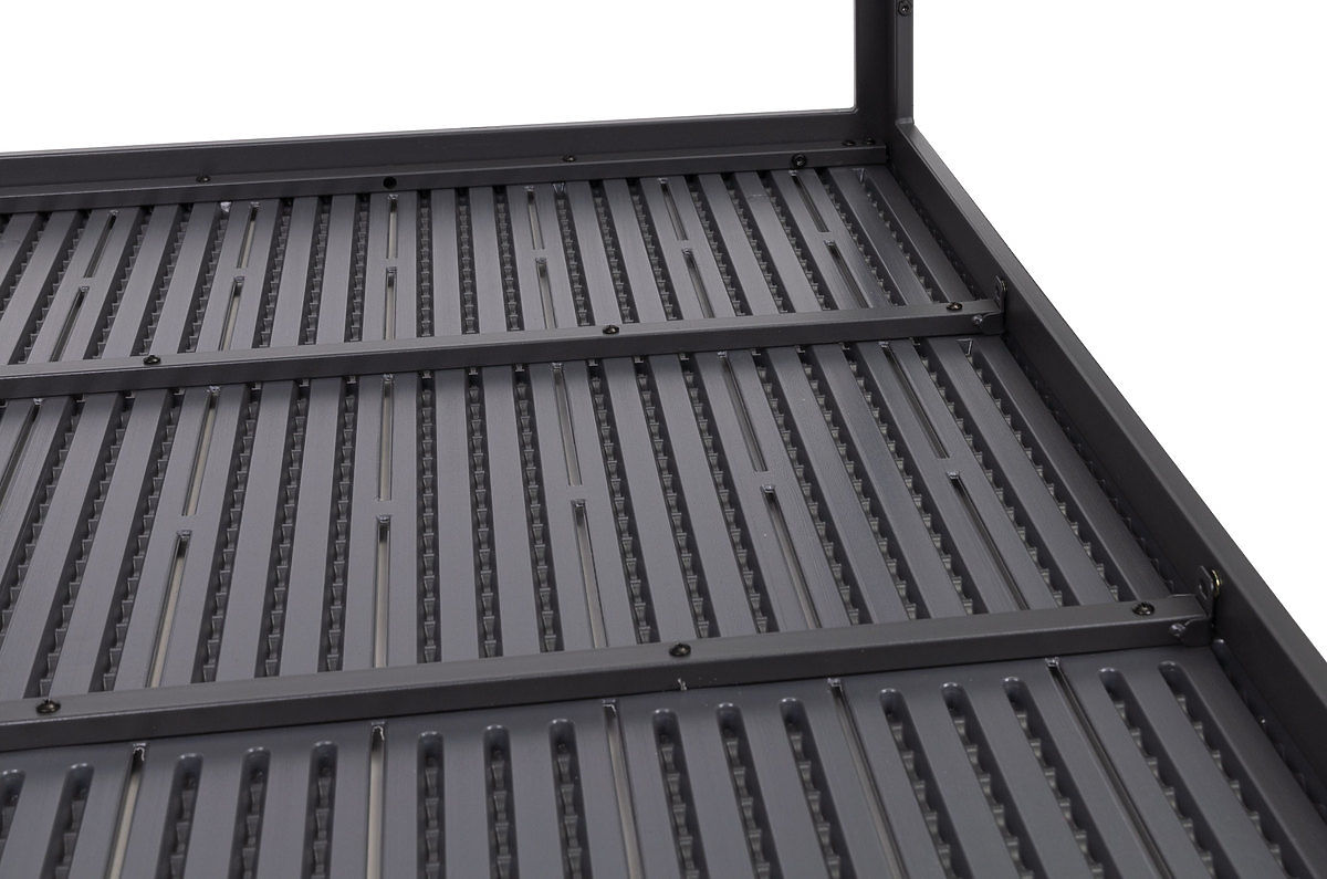 LARGE TABLETOPThe tabletop is made of a special weather-resistant material, its form and texture imitate real wood, giving it a unique character. Additionally, small gaps between the boards allow water drainage during rain.