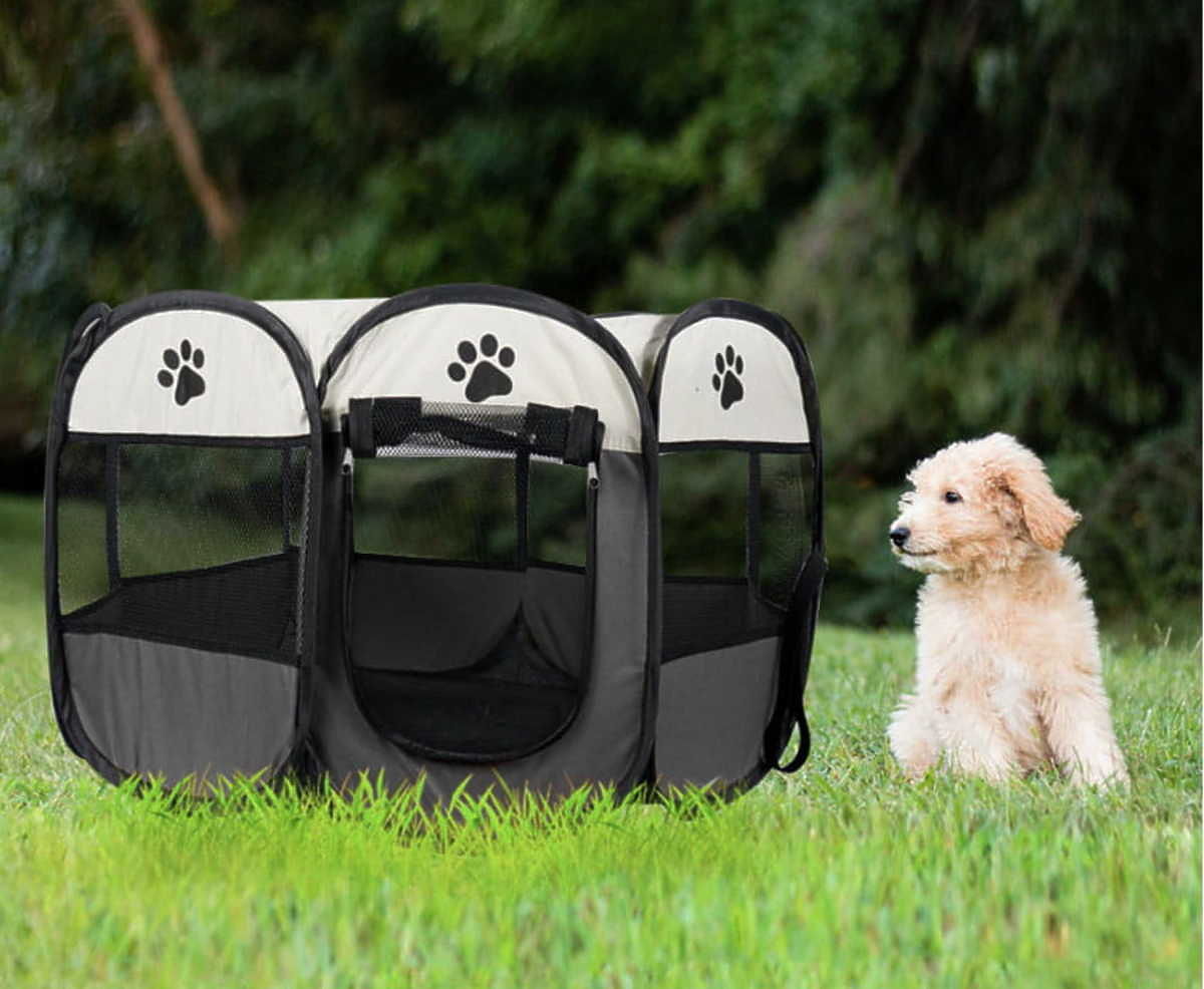 The playpen has many uses: it can be used for animal training, as a designated area for the animal, and as a safe haven for the pet. Additionally, the playpen can serve as a playground or a resting bed after an intense walk.