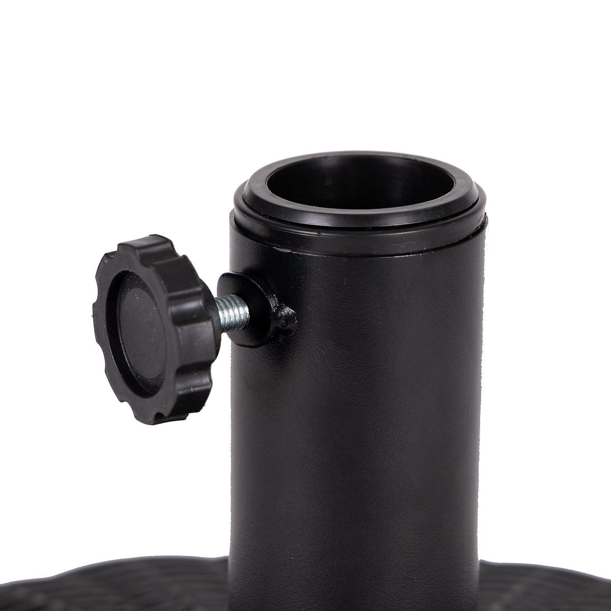 FILLINGThere is a screw cap at the top of the base. After unscrewing it, the base needs to be filled with water. When filled with water, it weighs approximately 22 kg, providing the ideal weight to stabilize the parasol.