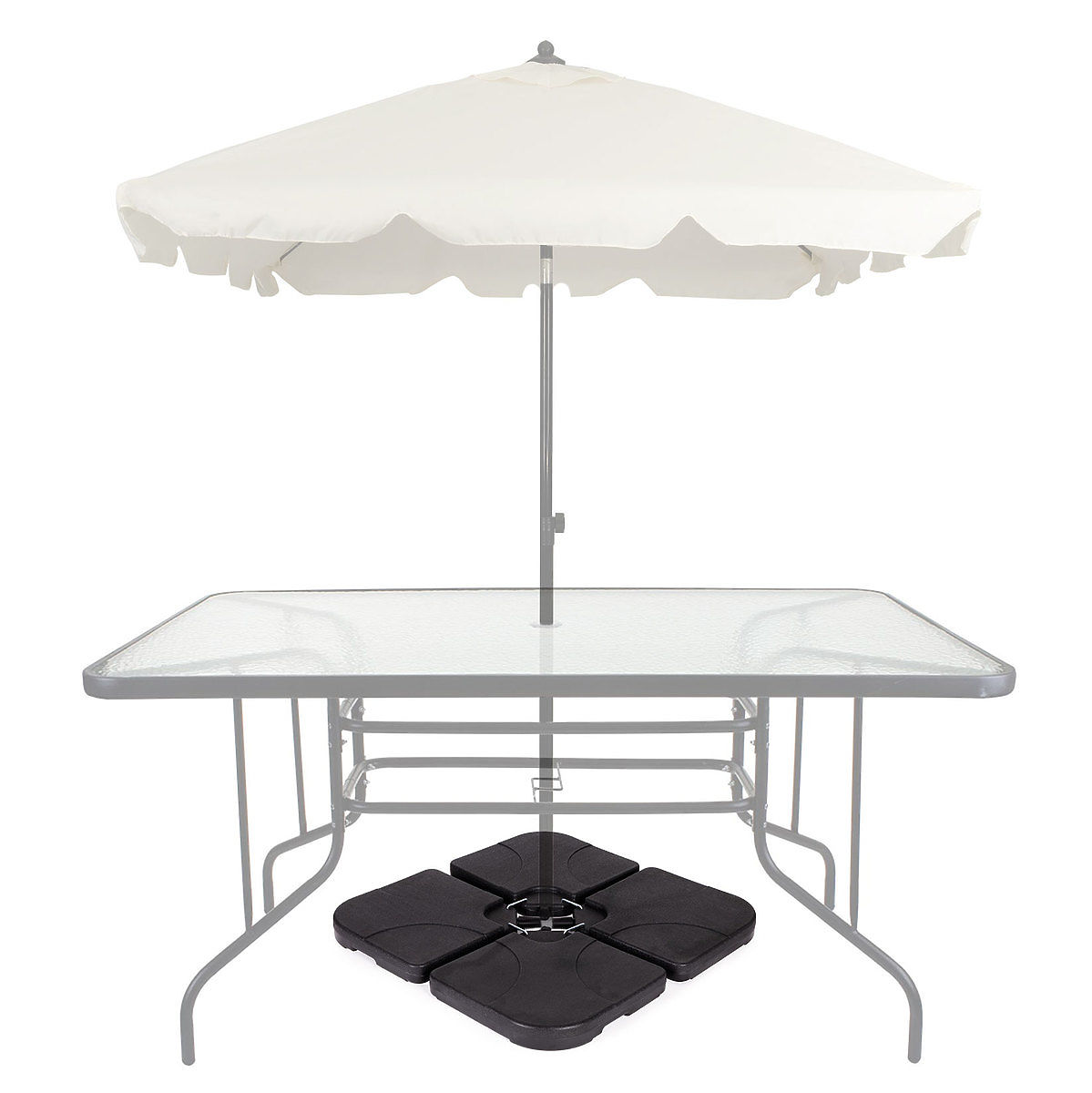 STURDY AND PRACTICALEach of the 4 elements of the base has a removable cap, which, when unscrewed, allows the base to be filled with water. A water-filled panel holds up to 15 l, and the total weight of the filled base reaches approximately 60 kg, which will support even a large parasol.