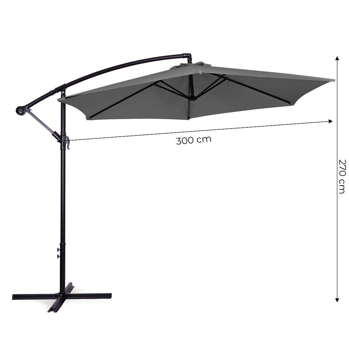 Lukahome.eu » Gardens / Parasols and sun sails / Large Garden Folding Cantilever Parasol 3m Grey 6 Ribs
