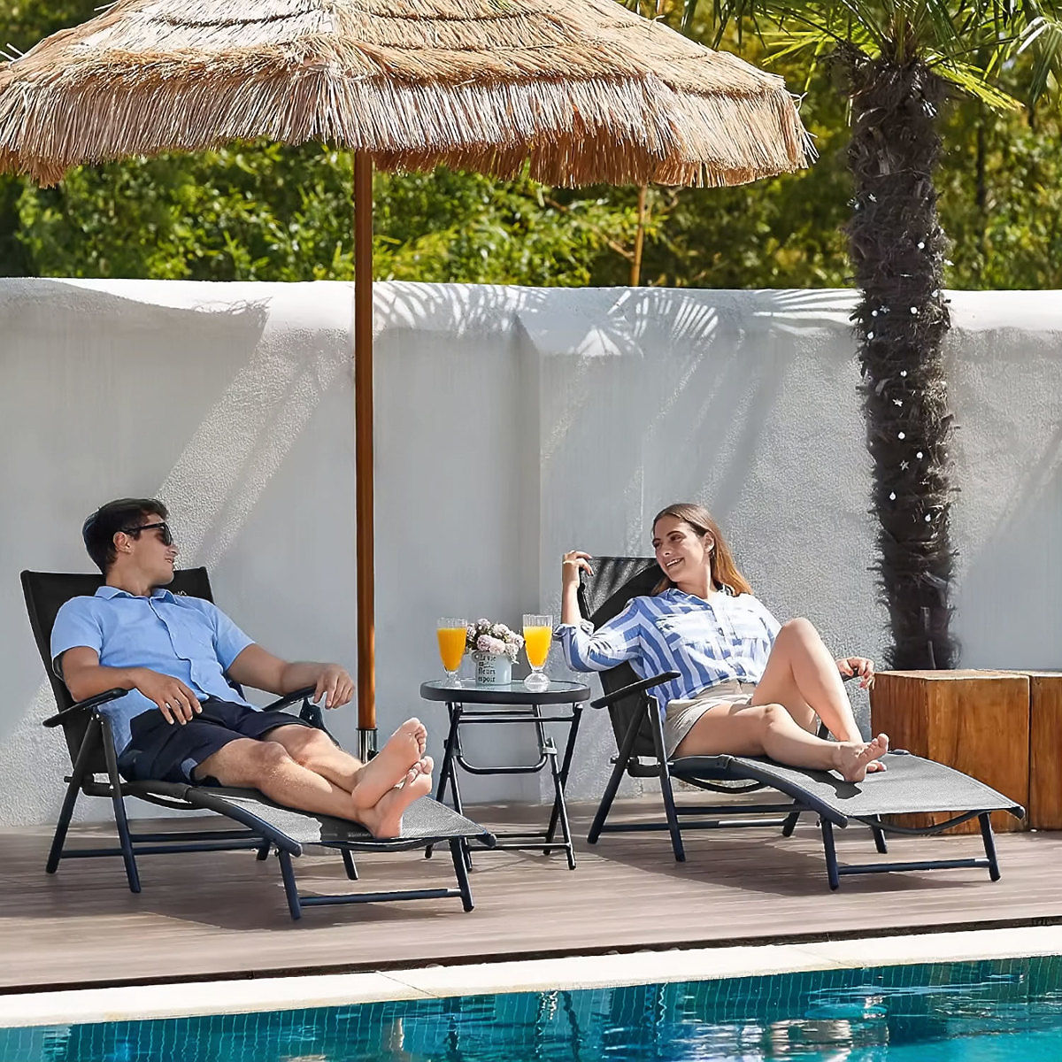 FOLDABLE DESIGNThanks to its foldable design, the lounger is perfect for holiday trips, you can take it to the beach, family picnic, and enjoy comfort in the fresh air.