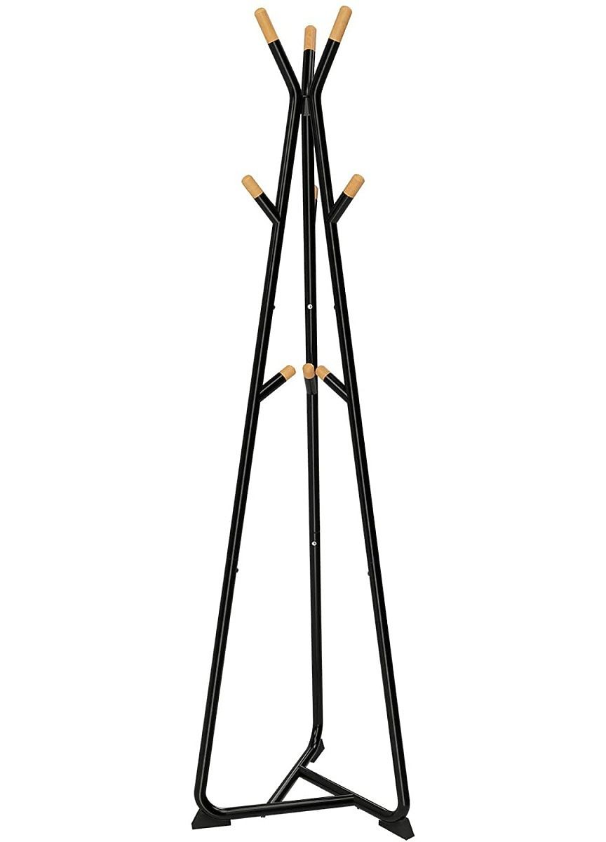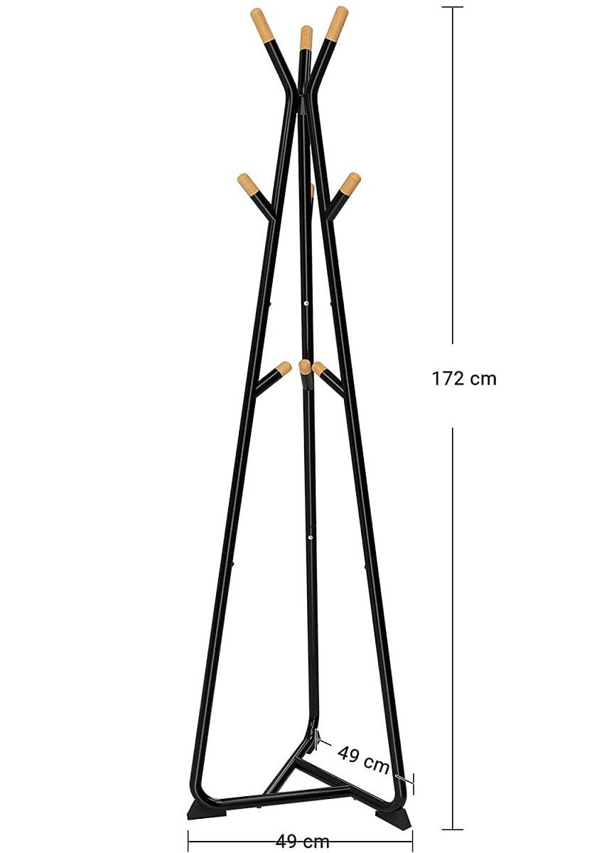 This space-saving product features a stable triangular base, ensuring the product won't tilt with additional load. Additionally, the product is equipped with 9 rounded beech hooks for hanging coats, jackets, bags, or scarves and hats.