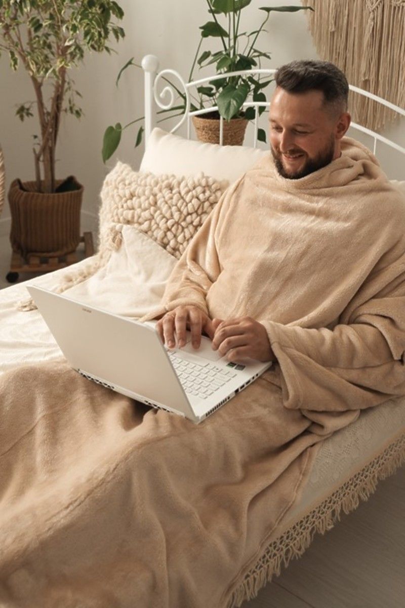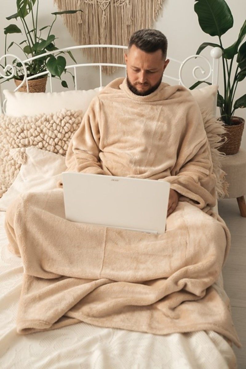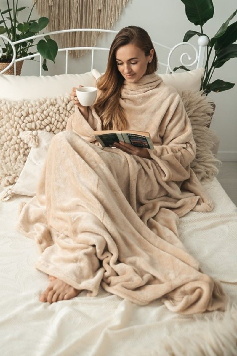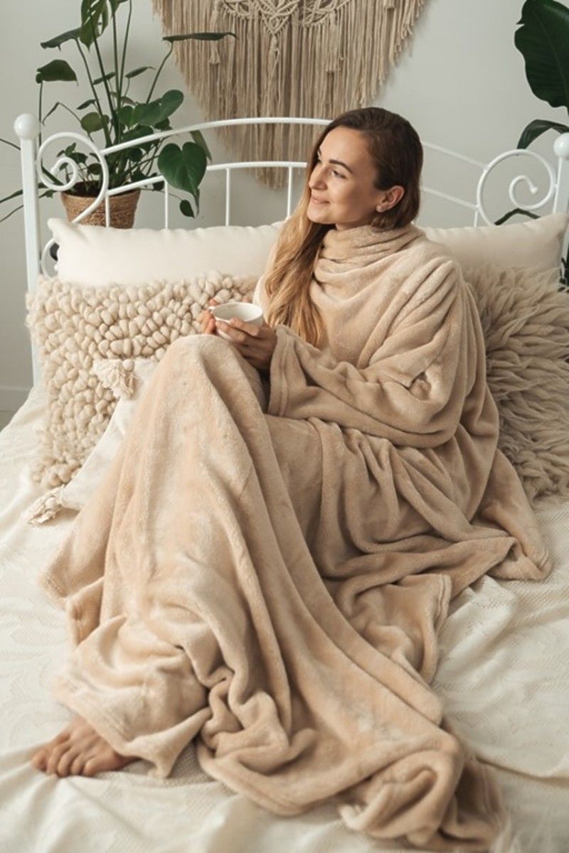 Lukahome.eu » Bedding / Bedspreads and Blankets / Blanket CASHMERE TOUCH with sleeves - 150 x 210 cm (beige)