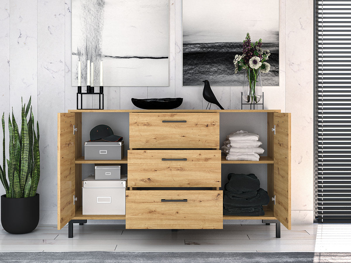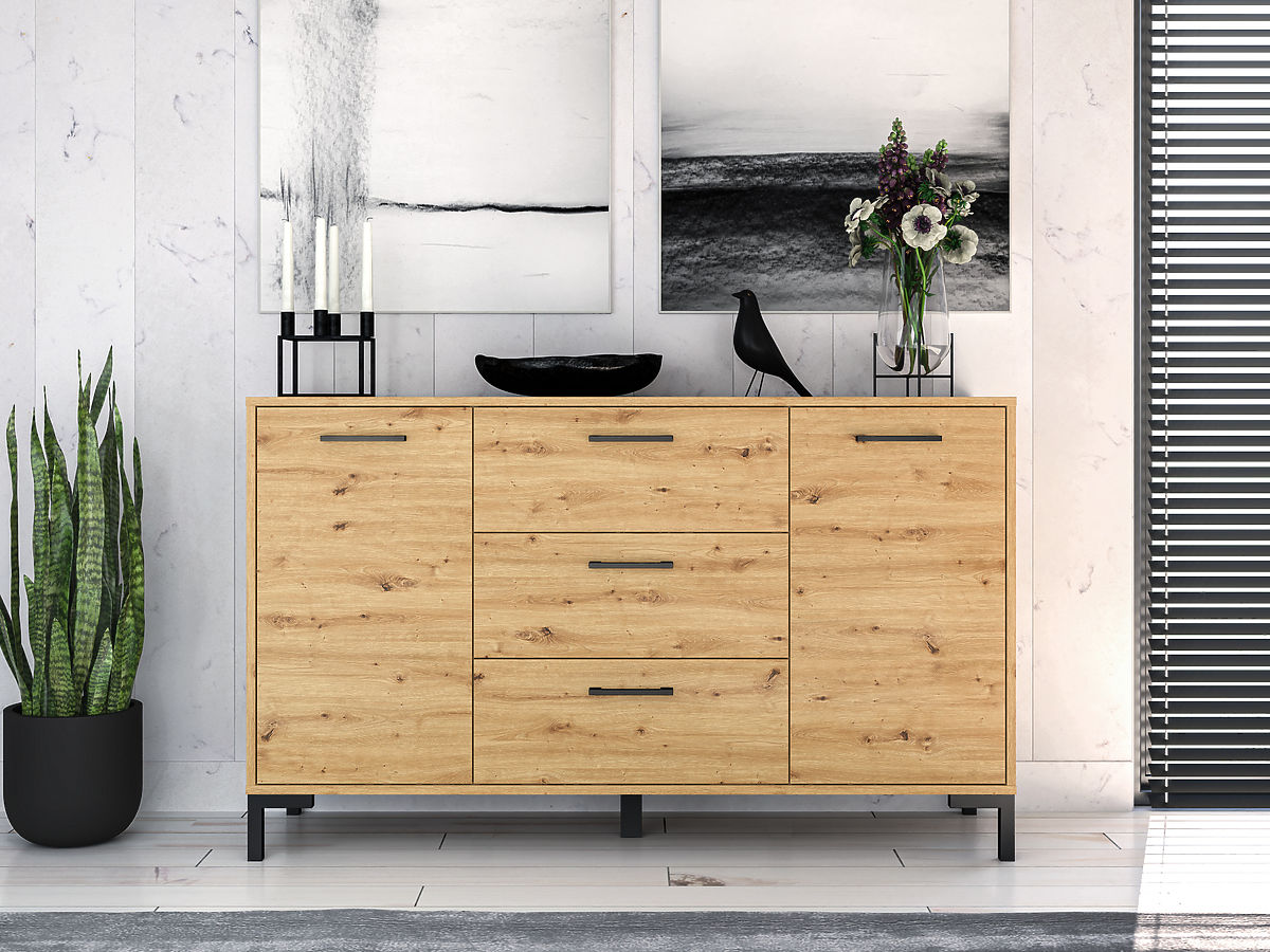 The stylish chest of drawers from the Nevio collection is a practical and elegant piece of furniture that fits perfectly into modern and traditional interiors. The oak decor gives the chest of drawers a pleasant natural look. This tasteful addition to your home will provide you with plenty of storage space for your belongings, whether it's clothes, books or other items you want to keep close at hand, while helping you keep your room tidy.