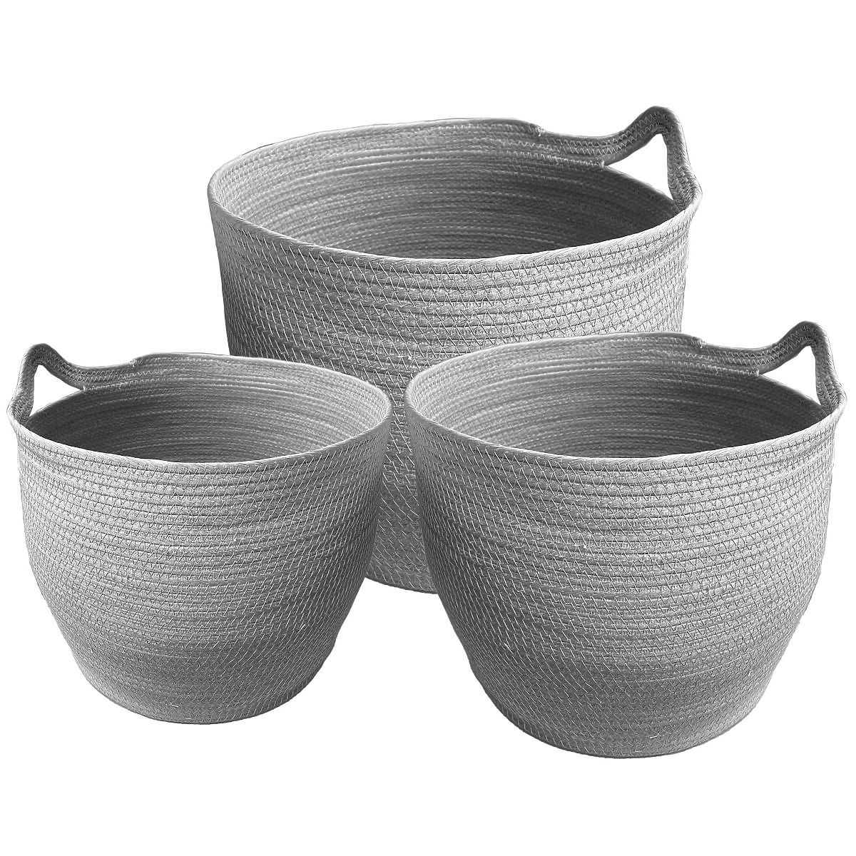 Hand-woven grey BOHO baskets for stylish storage. .. more