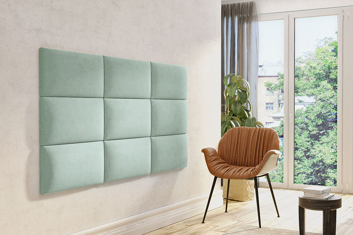 The Classic upholstered panels in mint color are available in three different sizes: