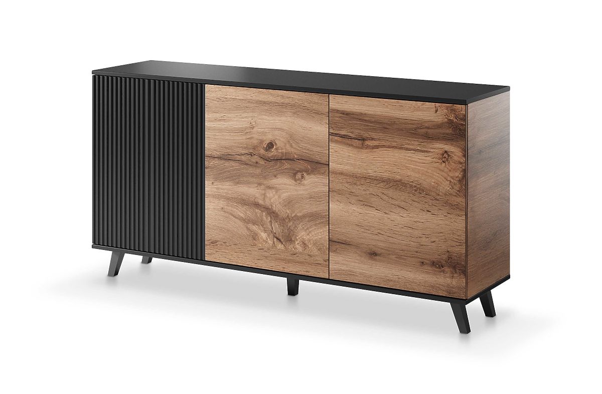 Modern sideboard with Wotan oak and black design, offering ample storage space. .. more