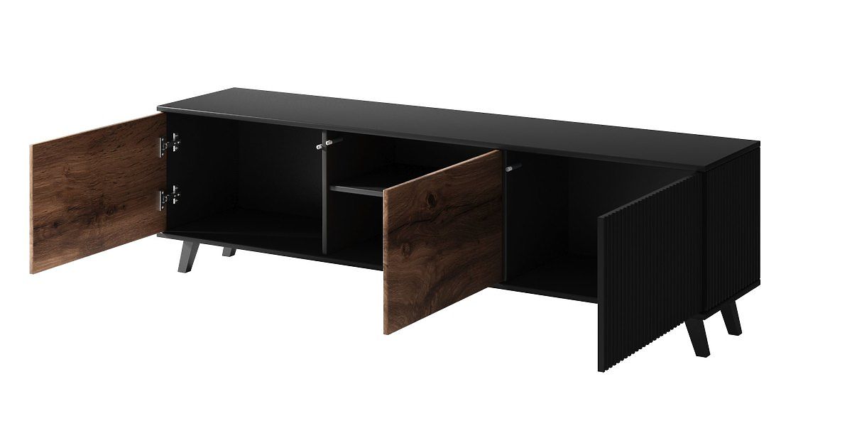 Material: The TV stand is made of veneered MDF and veneered furniture board, ensuring its durability and long lifespan. MDF is known for its stability and smooth surface, ideal for high-quality finishes. The table legs are made of polypropylene, providing strength and stability.