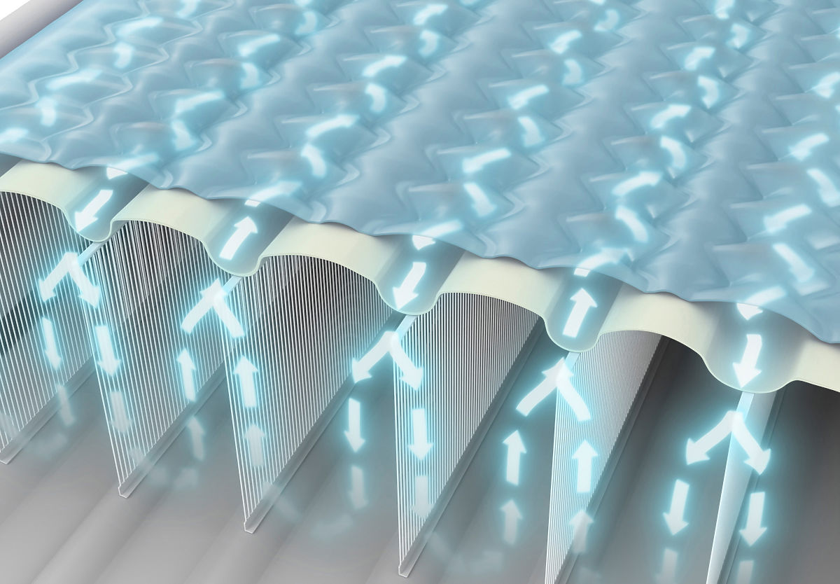 DURA-BEAMBody position during sleep is important; if incorrect, we feel pain upon waking. The technology used in this model helps avoid pain even after a long sleep. Chambers with a special design and a wavy lying surface ensure the correct spine position, and the mattress evenly distributes weight across its entire width.
