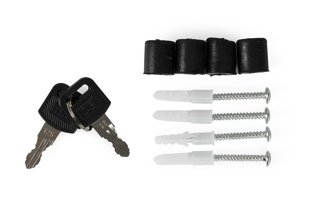 Along with the mailbox, you will receive a mounting kit - 4 anchors and spacers, allowing you to start installing the mailbox right after unpacking. The package includes two keys for opening the mailbox.