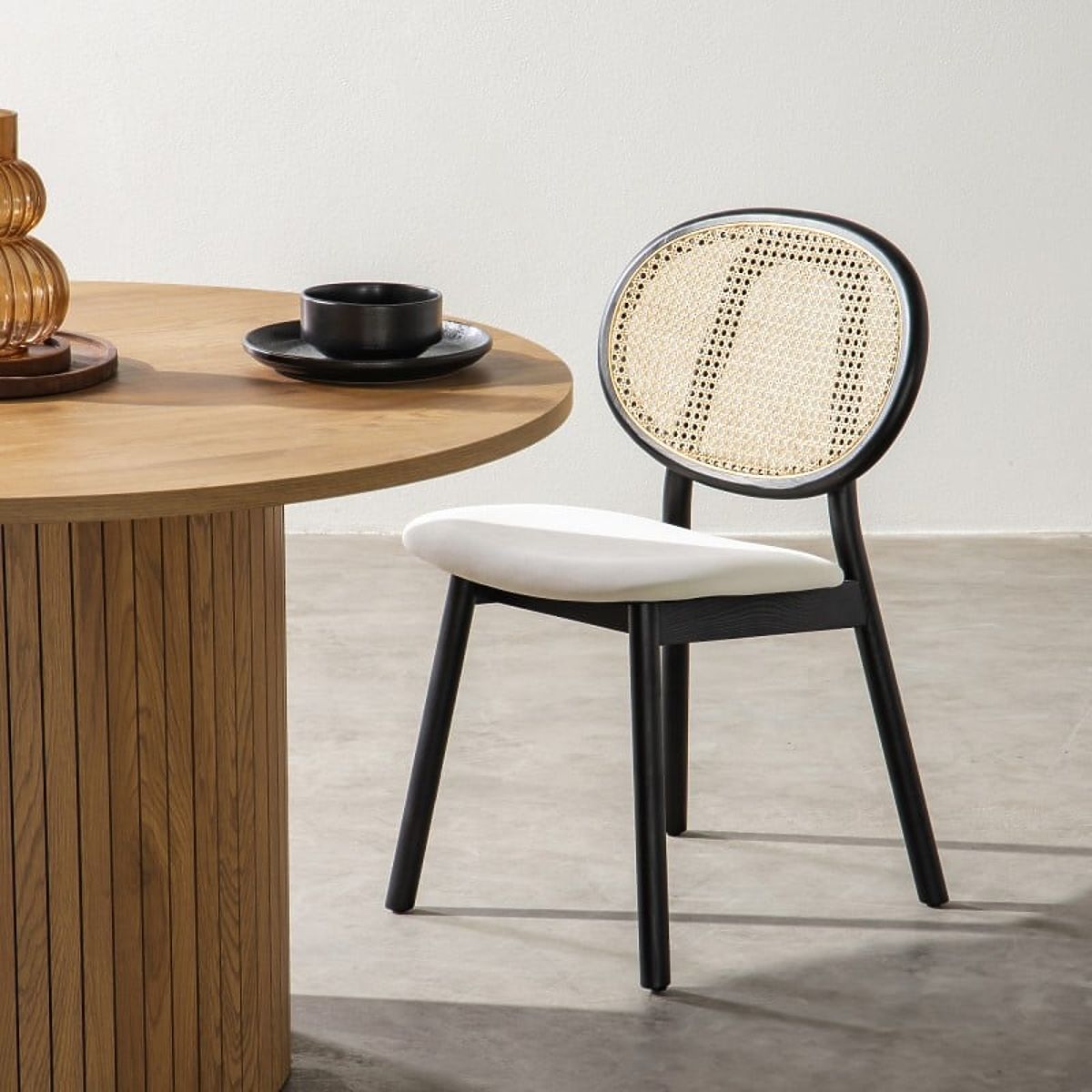 Lukahome.eu » Dining room and kitchen / Dining chairs / Wooden Chair Monet with Viennese Weave, Rattan, Velvet, Black/Ecru