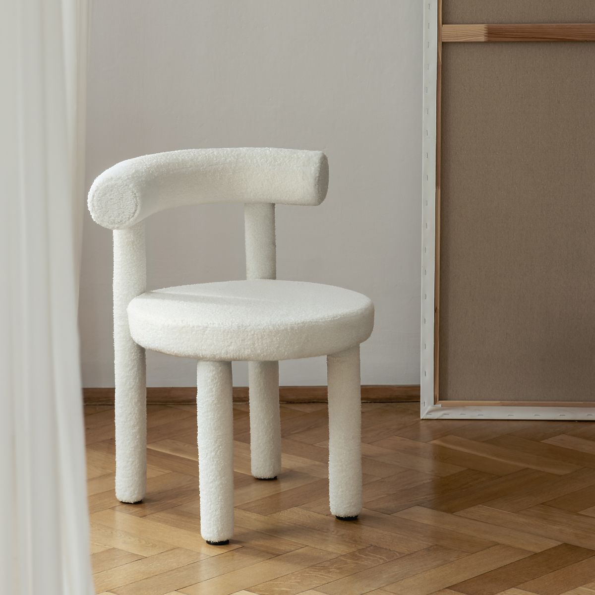 The Pedro 2.0 chair offers unique style and comfort with its ecru boucle fabric. .. more