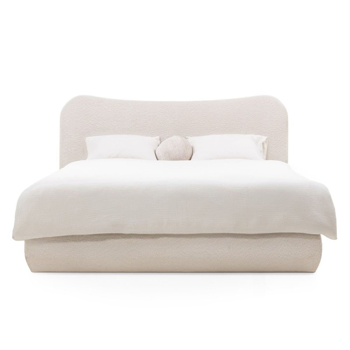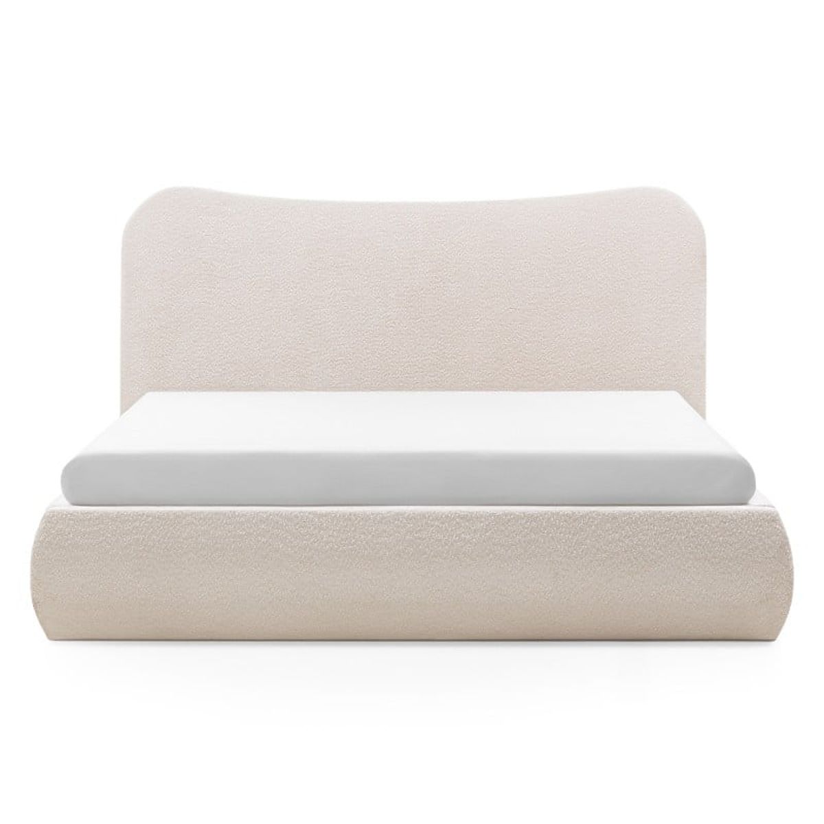 Upholstered bed with storage and rounded headboard. .. more