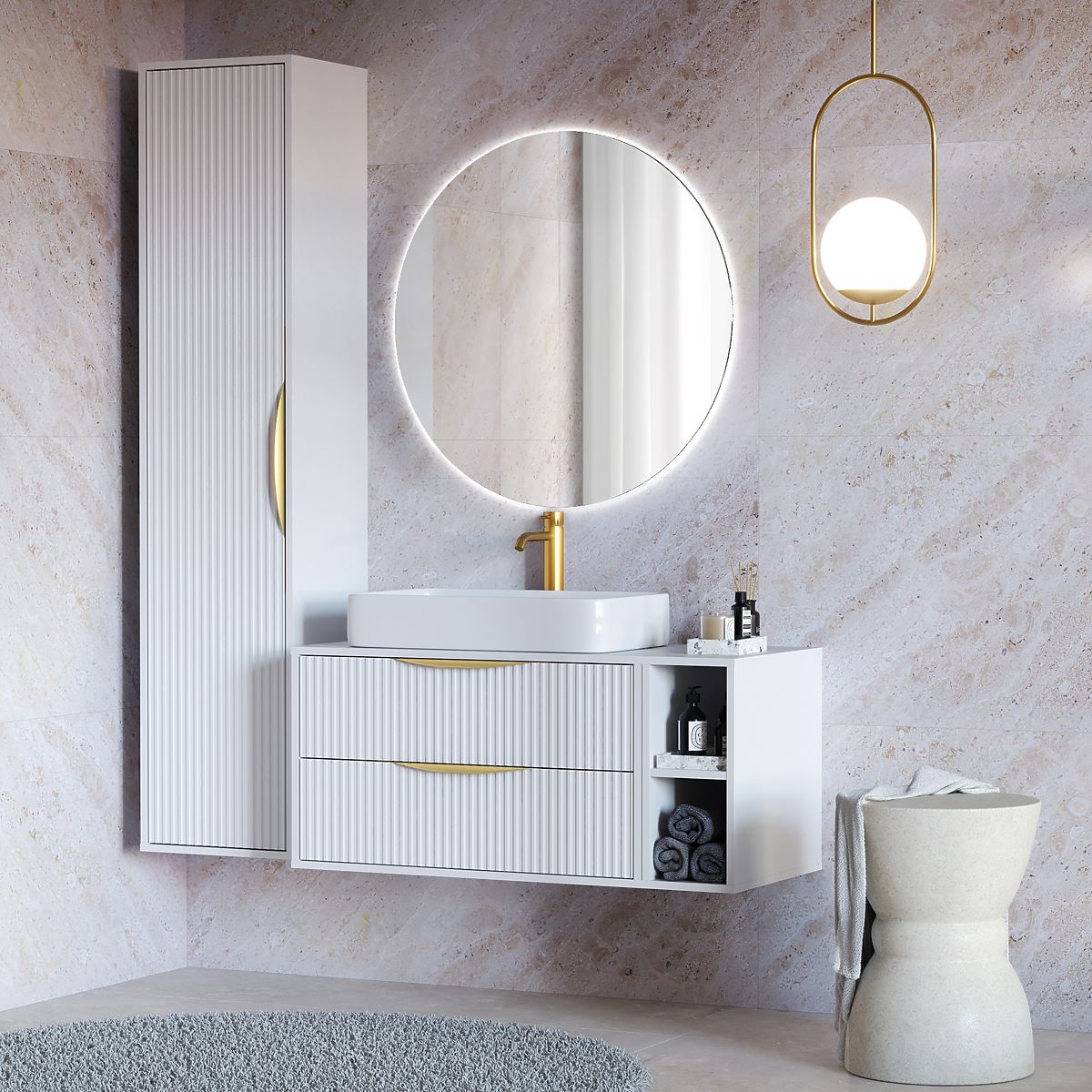 Lukahome.eu » Bathroom & Toilet / Bathrooms lockers / Avila 2.0 Cabinet for Countertop Sink, 80 cm, Grooved, Gold Handles, White