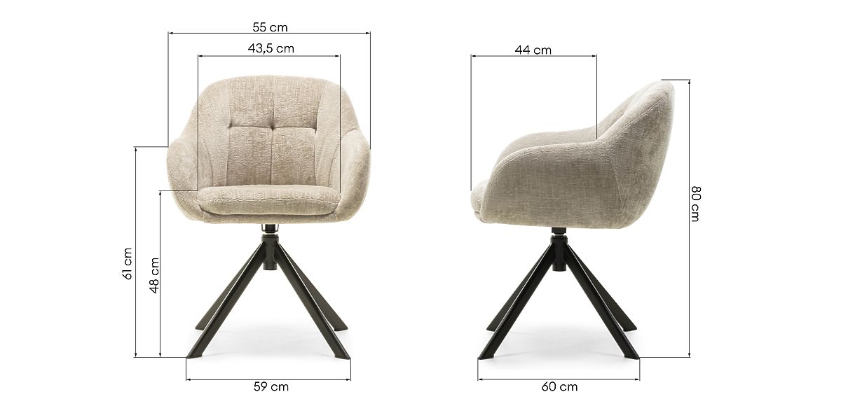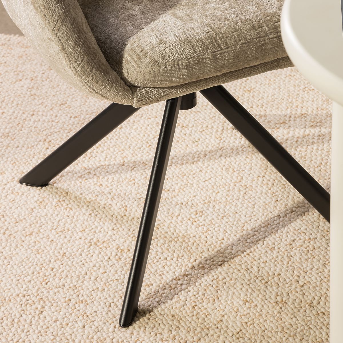 Light beige swivel chair with black legs and comfortable armrests. .. more