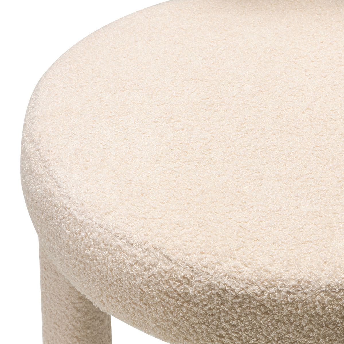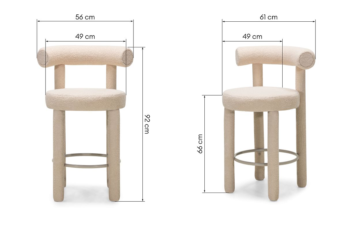Stylish beige boucle bar stool with a rounded backrest. .. more