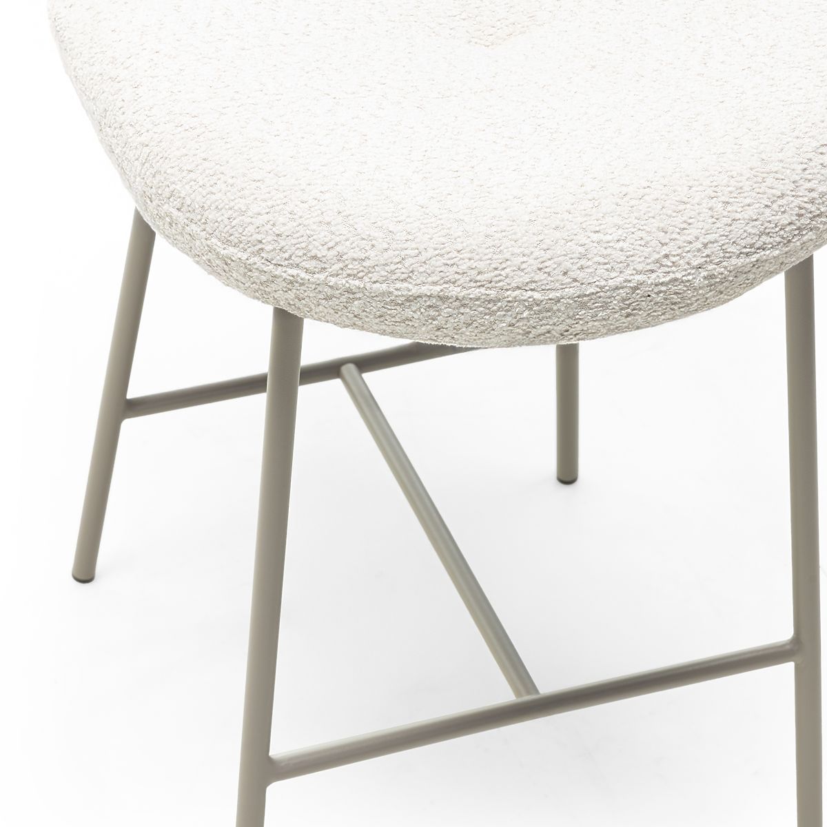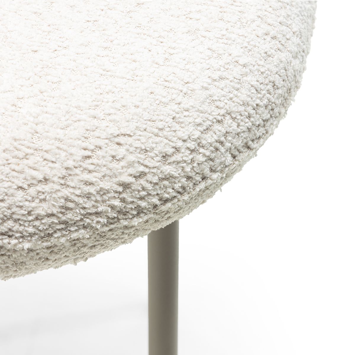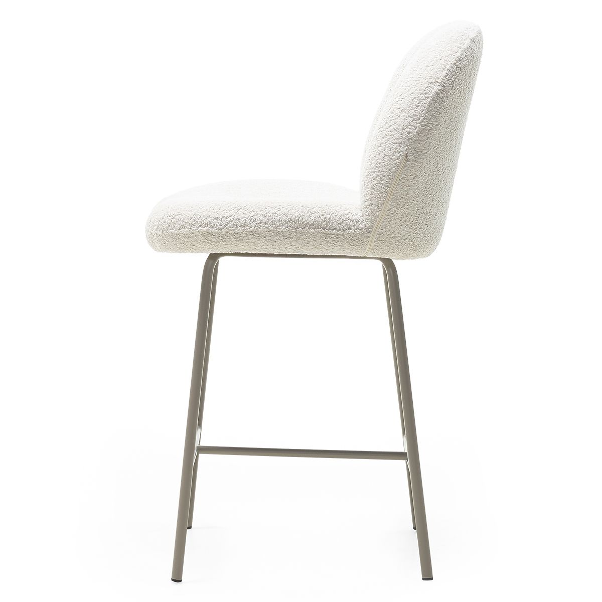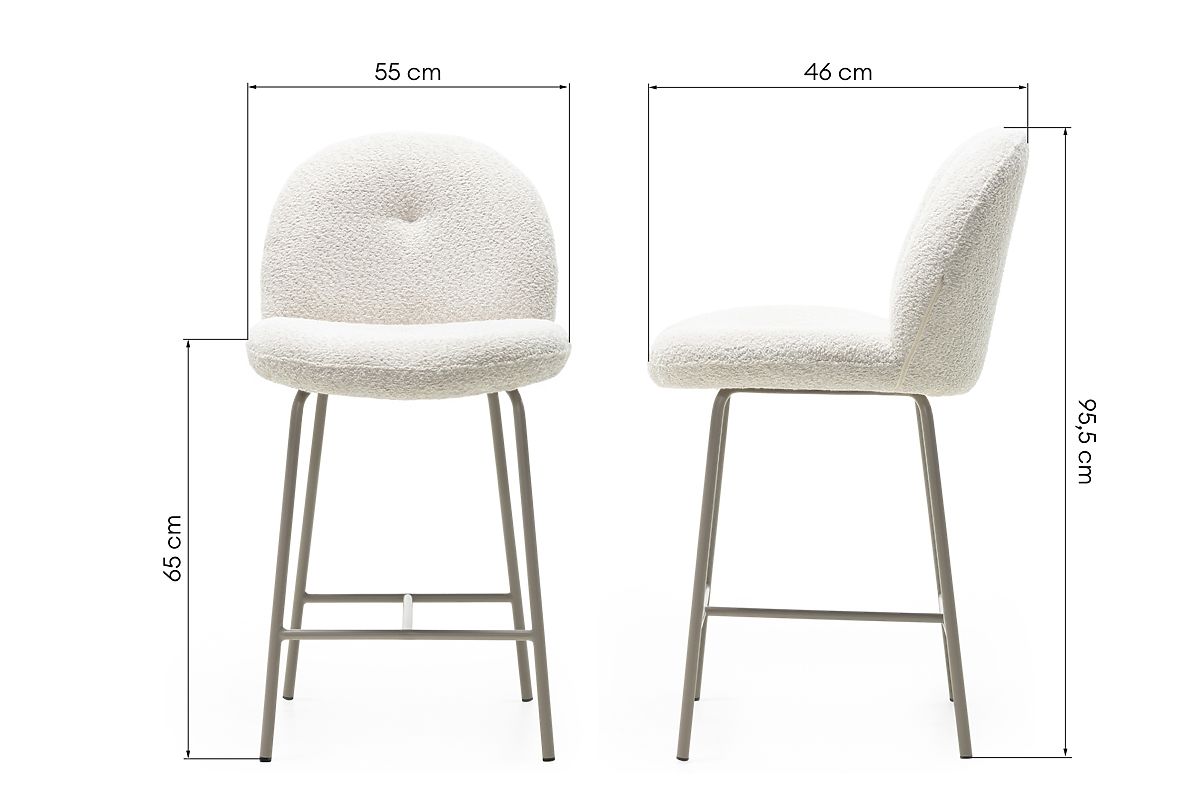 Light beige bar stool with a rounded backrest and foam-filled seat. .. more