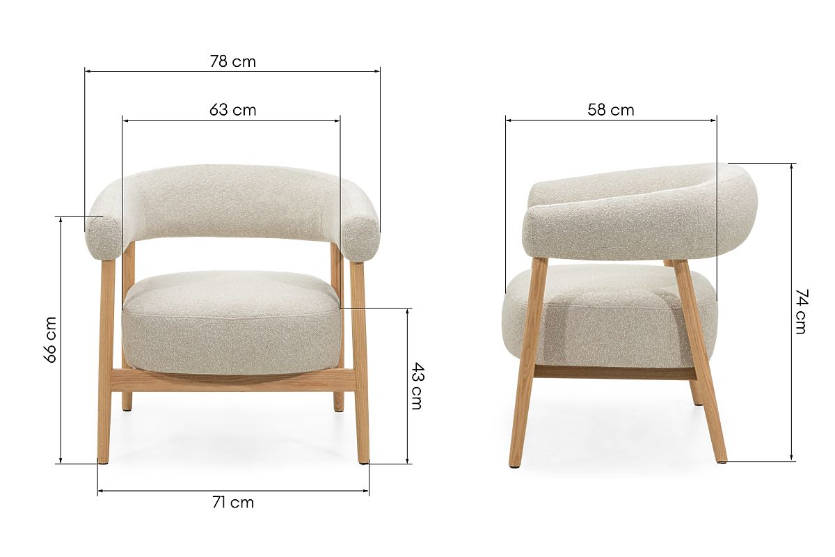 Lukahome.eu » Armchairs a sitting / Armchairs / Upholstered Chair/Armchair Montepulciano, Light Beige/Oak Wood, Rounded