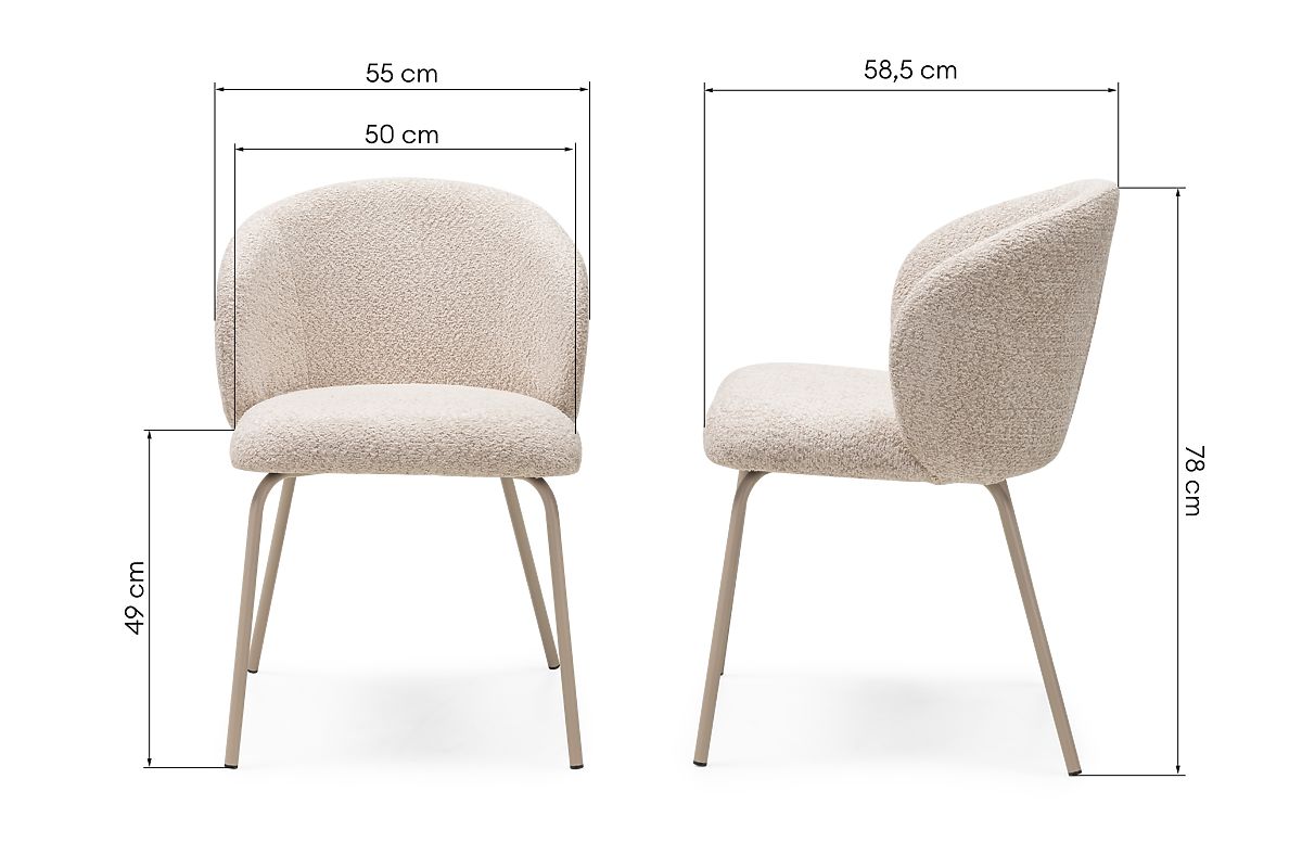 The Larisa chair is a piece of furniture with an exceptional design that easily enhances the elegance of any interior. The soft-to-touch upholstery in a beige shade perfectly complements the beige metal legs, creating a unified and subtle appearance. The soft seat and gently rounded backrest ensure not only aesthetics but also unparalleled comfort. Larisa is the ideal solution for those who want to combine original form with functionality in everyday use.