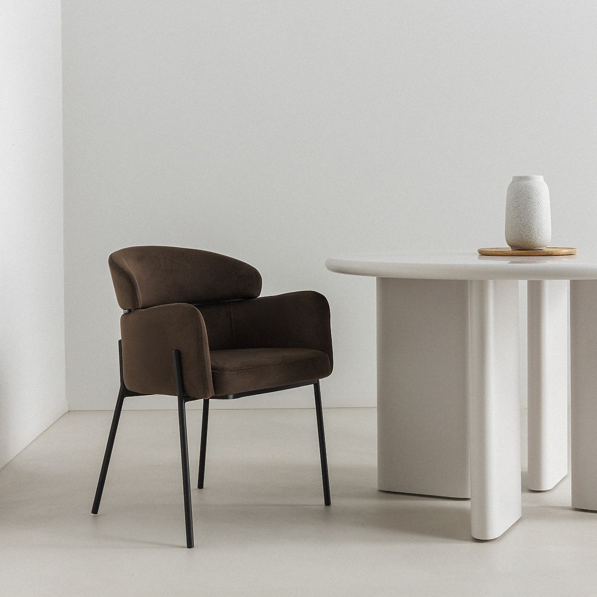 The Granda chair combines modern design with luxurious velvet upholstery. .. more