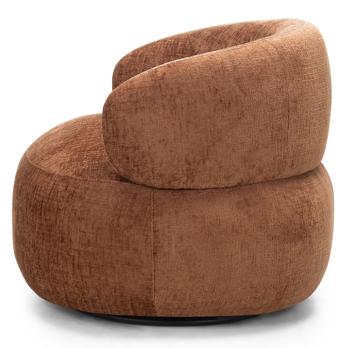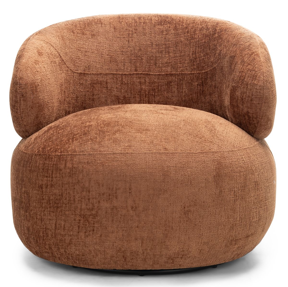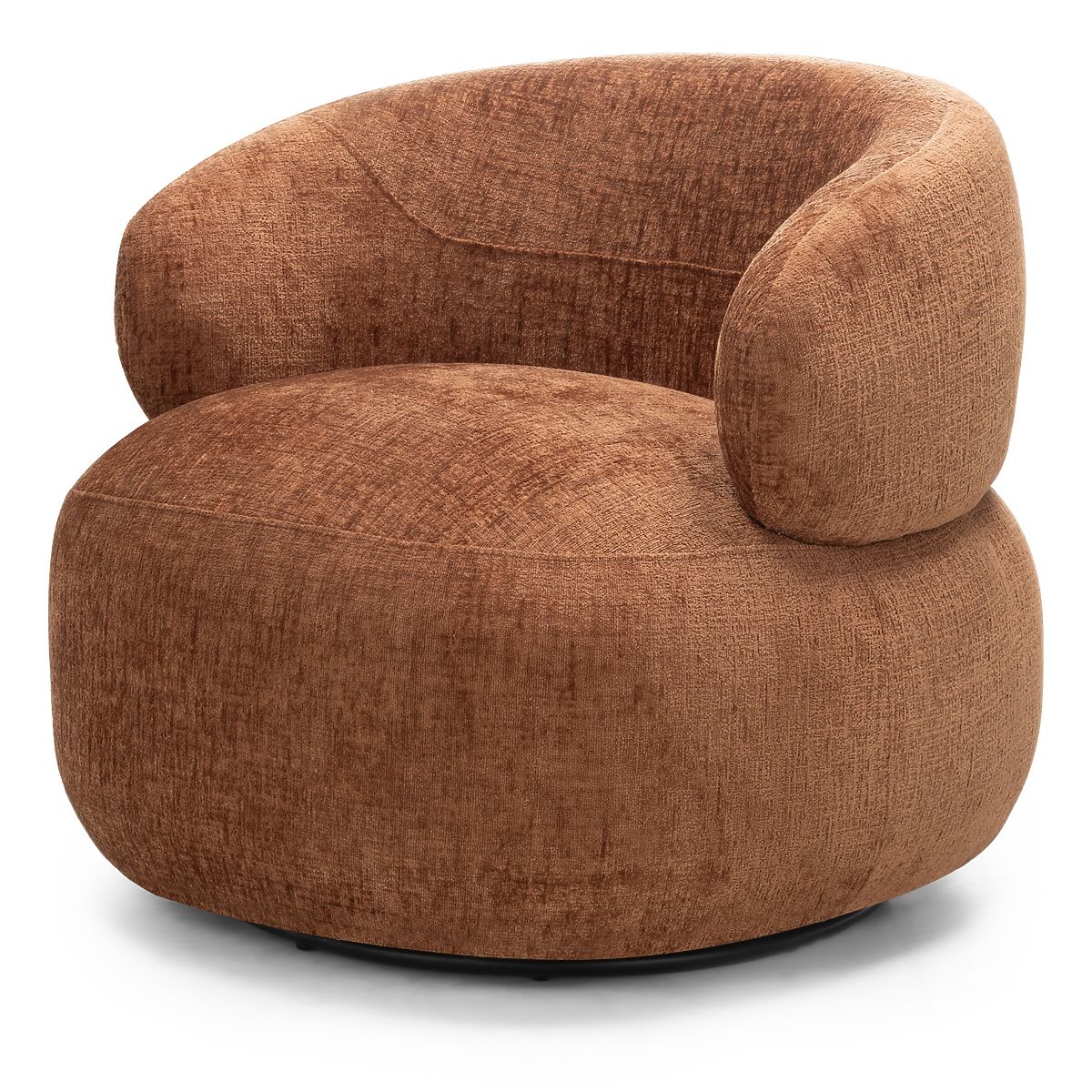 Rumble swivel chair with copper chenille fabric and rounded shapes. .. more