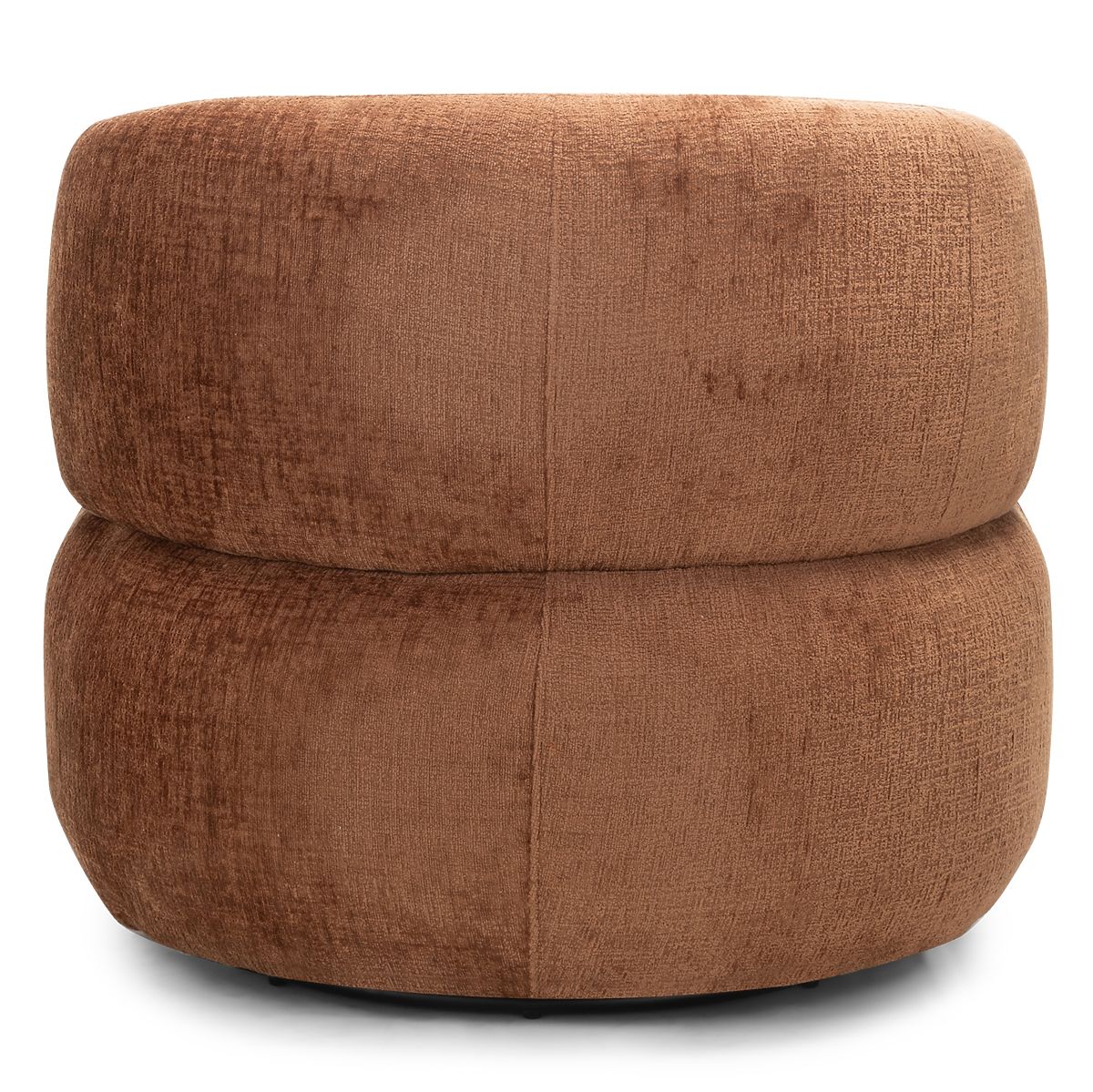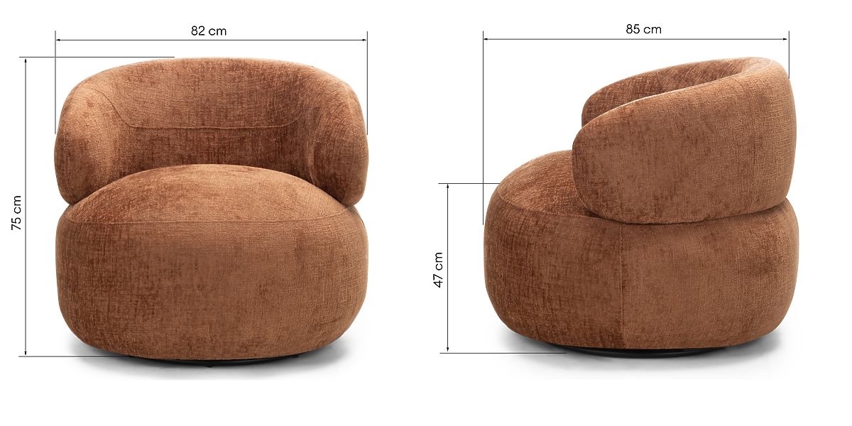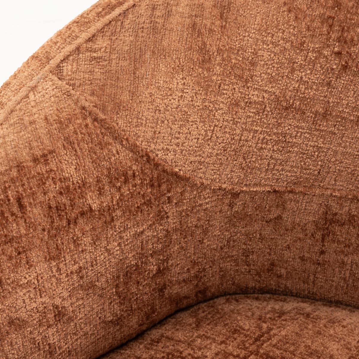 Rumble swivel chair with copper chenille fabric and rounded shapes. .. more