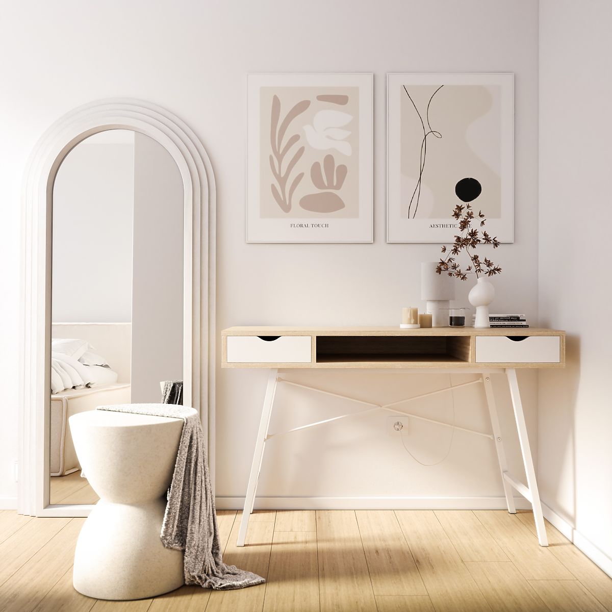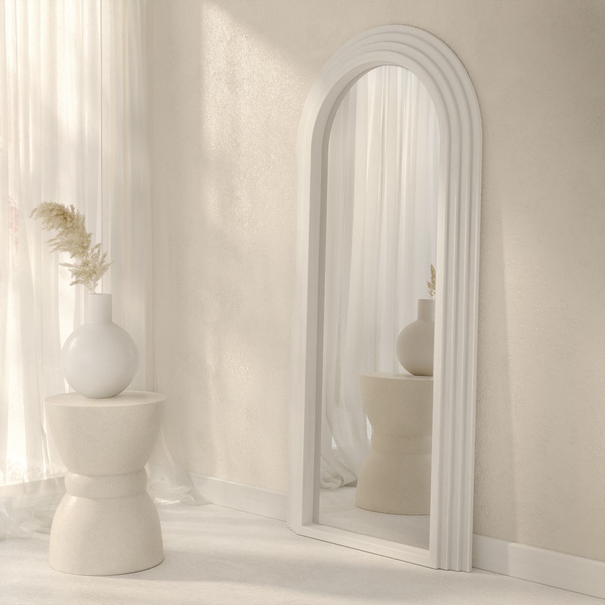 Wooden framed mirror Giovanni with a white arch design. .. more