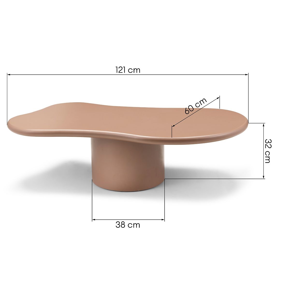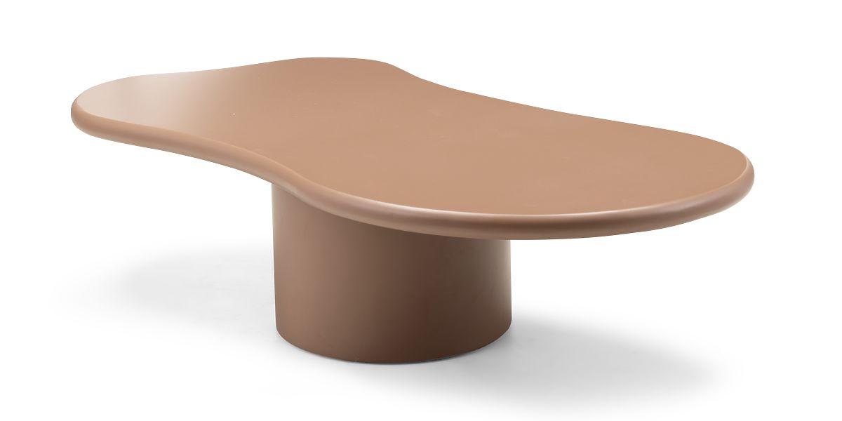 Cinnamon-colored coffee table with a rounded, organic shape. .. more