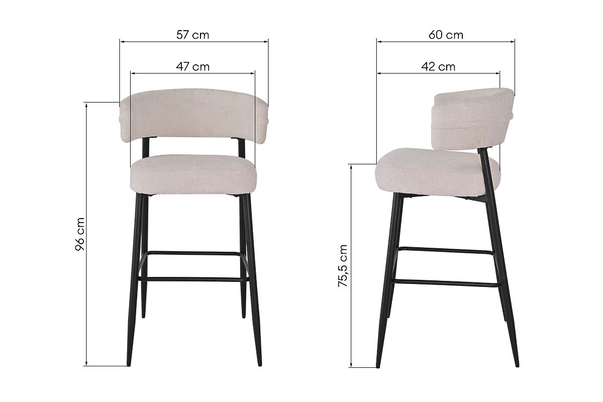 Elegant cream bar stool with black legs and a rounded backrest. .. more