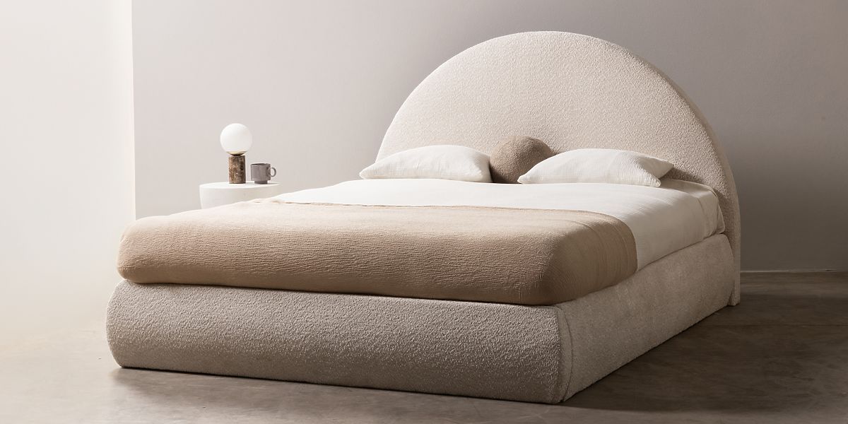Lukahome.eu » Beds / Matrimonial beds / Beds 140x200 / Upholstered Bed Orbi 140x200 cm, with Slatted Base and Storage, Rounded, Beige